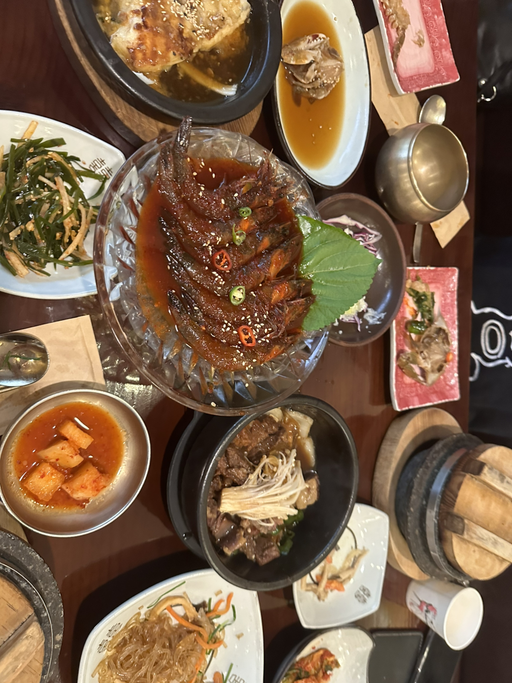 레미가 부산에서 먹고 싶어 한 음식은 닭발, 새우장, 막창이었다. 내가 잘 먹는 음식메뉴들이 아니라 카카오맵에서 남포동에서 새우장이 맛있는 식당을 찾았다. 매운맛새우장 정식과 갈비찜 정식을 돌솥밥 세트로 주문했다. 친구가 불닭비빔면을 잘 먹을 정도로 매운맛을 좋아해서 난 맵찔이이지만 도전했다. 다행히 안 맵더라.