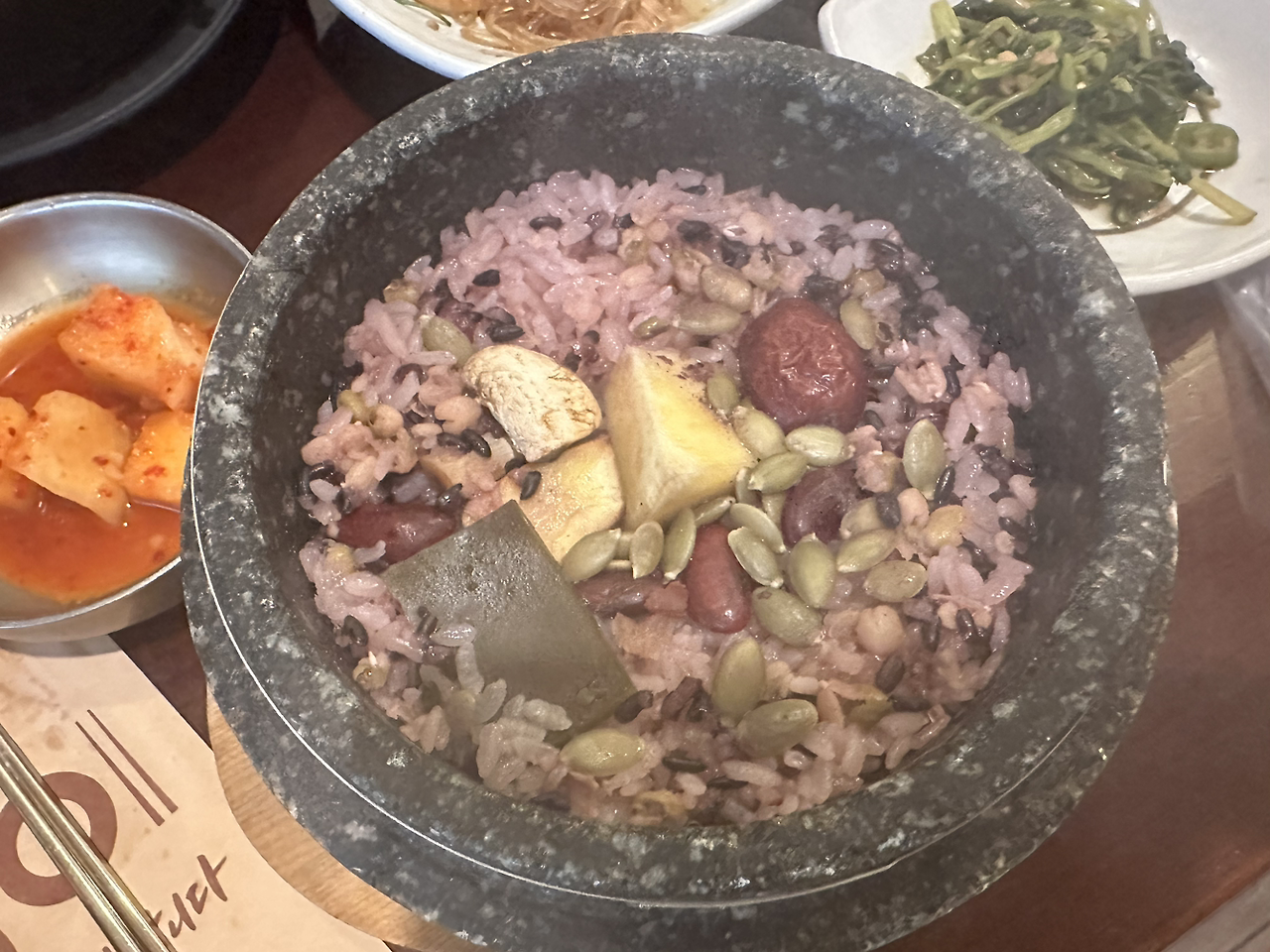 돌솥밥을 시키면 밥을 먹고 누룽지도 남김없이 먹을 수 있다는 장점이 있다. 숭늉의 매력을 친구에게 전파하려고 돌솥밥을 먹었는데, 맛있는 반찬과 음식에 금방 배불러서 밥을 남겼더라. 누룽지 시식하더니 밍밍하단다. 이런 자극적인 입맛으로 길들여진 현대인.