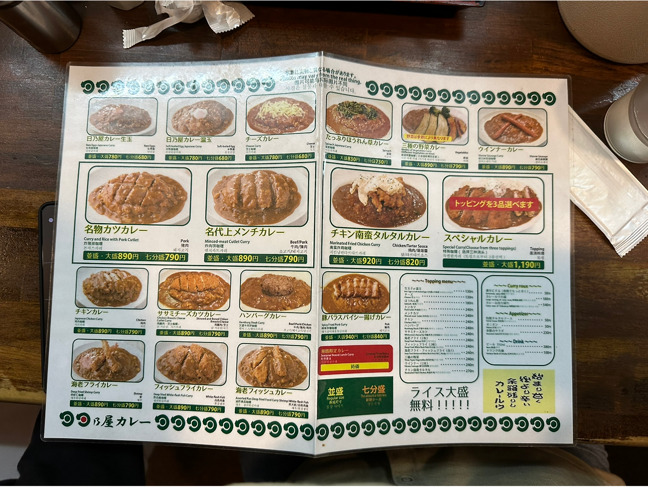1,575엔에 무제한 그릇 옵션도 존재한다. 하지만 두 그릇을 먹어보니 확실히 알겠다. 난 한 그릇도 충분한 사람인 걸. 카레를 먹고 적당히를 배웠다.