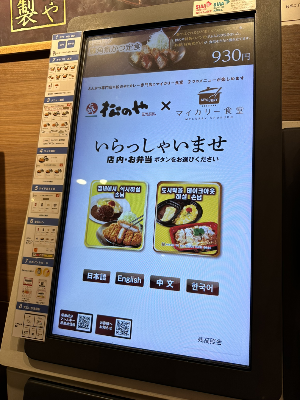 돈가스와 카레 두 가지 체인을 함께 운영하는 곳이었다. 도쿄여행 1일 차라 일본어가 적응이 안 됐는데 한국어로 주문이 가능해서 안심했다. 돈가스도 먹고 싶고 카레도 먹고 싶을 땐 카레에 돈가스를 올려서 먹는 게 공평하지 않나.