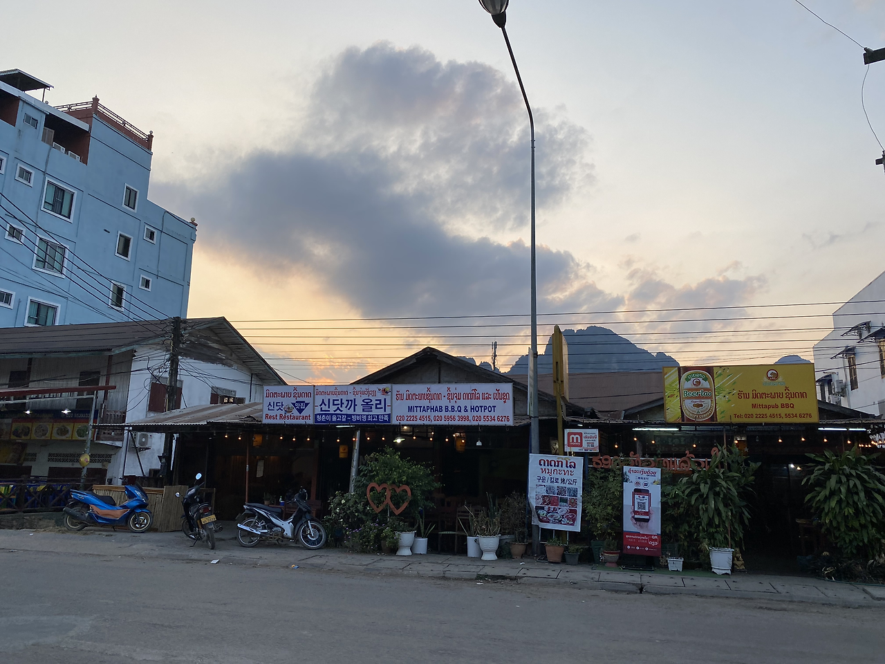 왜 꽃보다 청춘 프로그램이 유명해졌는지 그 이유를 여기 와보니 알겠다. 친한 친구들과 우정여행에 라오스 방비엥을 적극 추천한다. 낮에는 블루라군에서 물놀이 후 저녁엔 신닷을 꼭 드시라! 그럼 대단히 행복해질 것이다. 저렴한 가격에 엄청 배부른 식사 한 끼를 파티하듯 실컷 즐길 수 있으니 말이다. 나는 사실 한국에서 가족들과 함께 먹는 삼겹살이 제일 그립다.