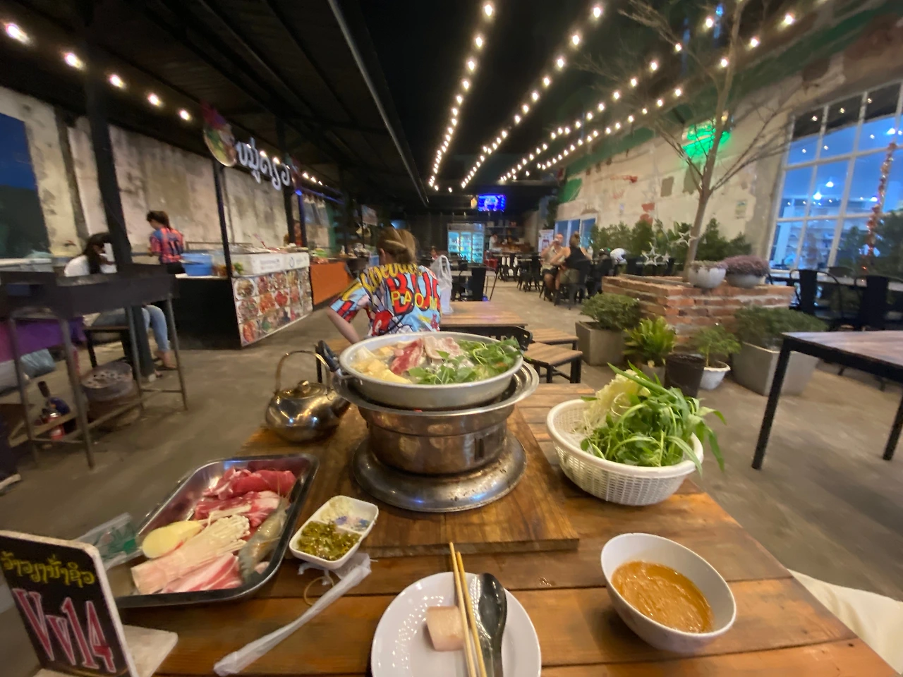 고기를 구우면서 야채, 버섯, 어묵, 당면, 계란두부, 날계란을 취향껏 풍덩풍덩 빠뜨려 먹는 샤부샤부까지. 멀티 식사가 가능한 라오스 음식 신닷을 소개한다.