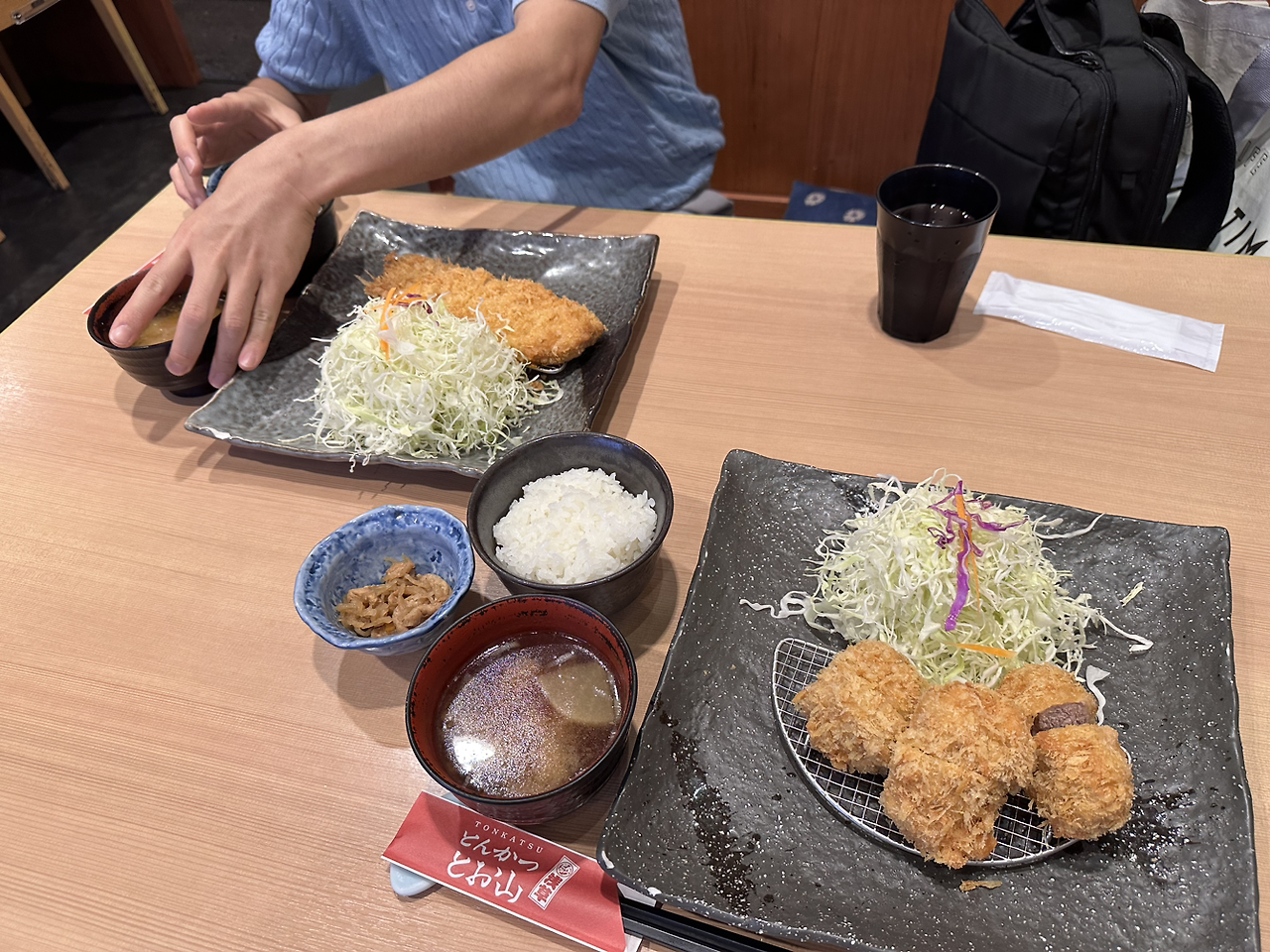 밥과 국이 포함된 런치메뉴 시간이라 로스카츠와 히레카츠 세트를 주문했다. 주문하자마자 만들기 시작하신다. 오픈주방이라 음식을 조리하는 과정을 실시간으로 볼 수 있다.