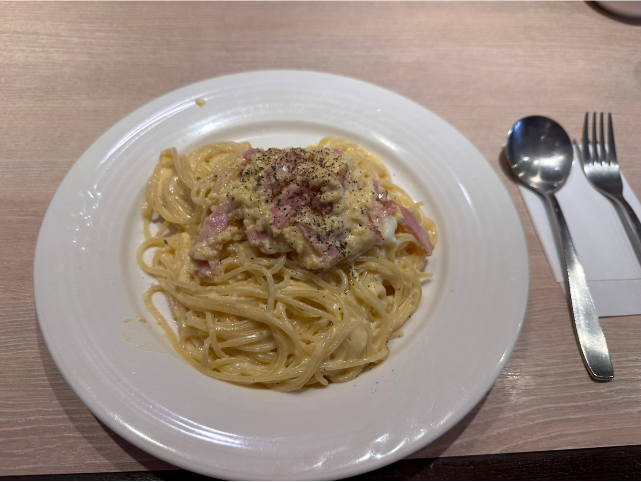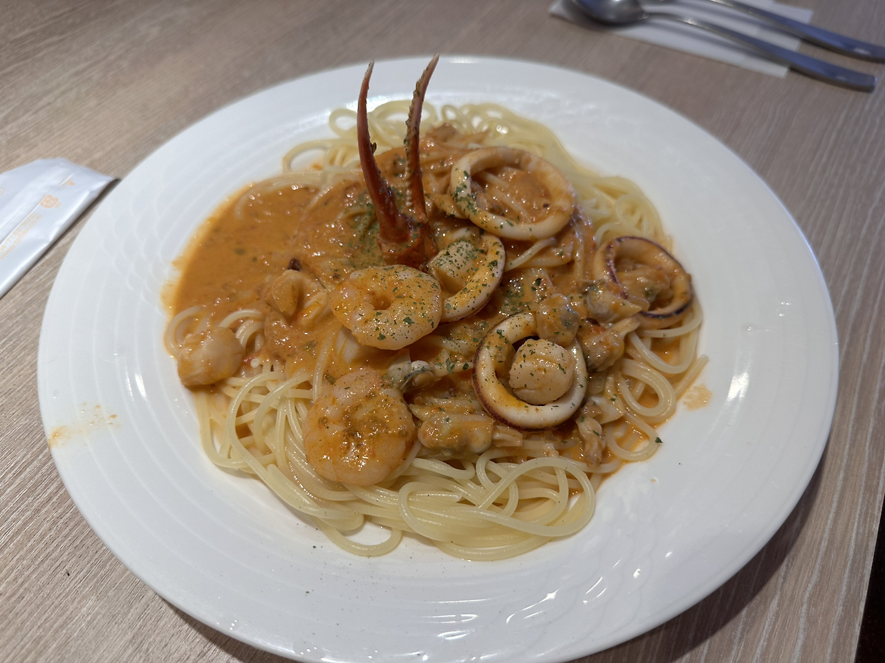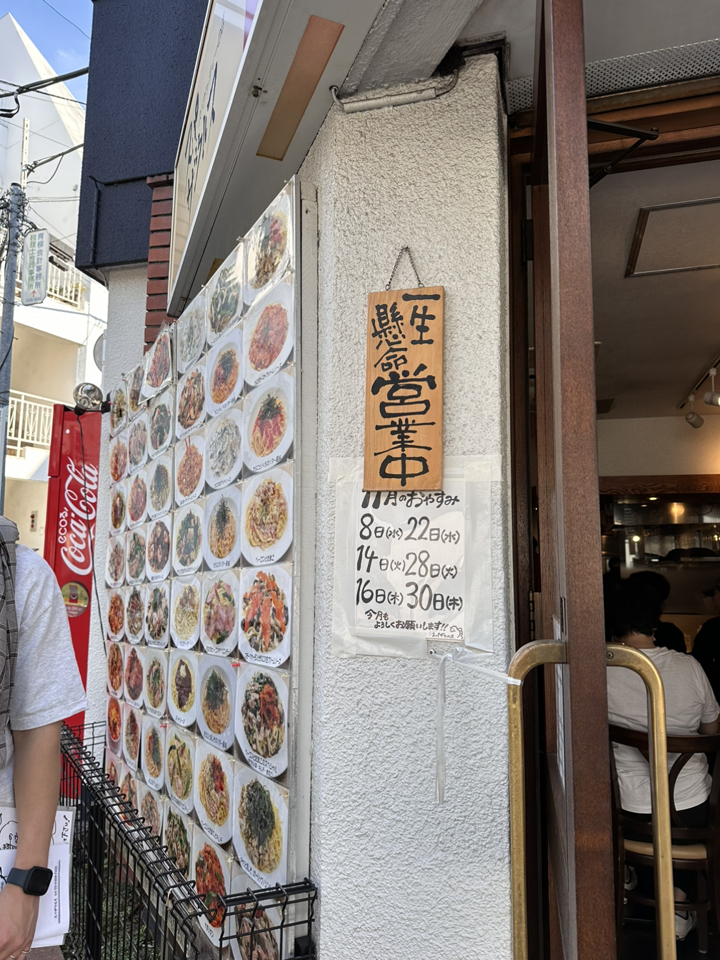 메뉴판이 다 일본어인 것은 개의치 않았다. 파스타 사진이 벽 한편을 다 채우고 있었기 때문에 보기에 맛있어 보이는 걸 시켰다. 대기줄이 짧아서 금방 들어갔다.