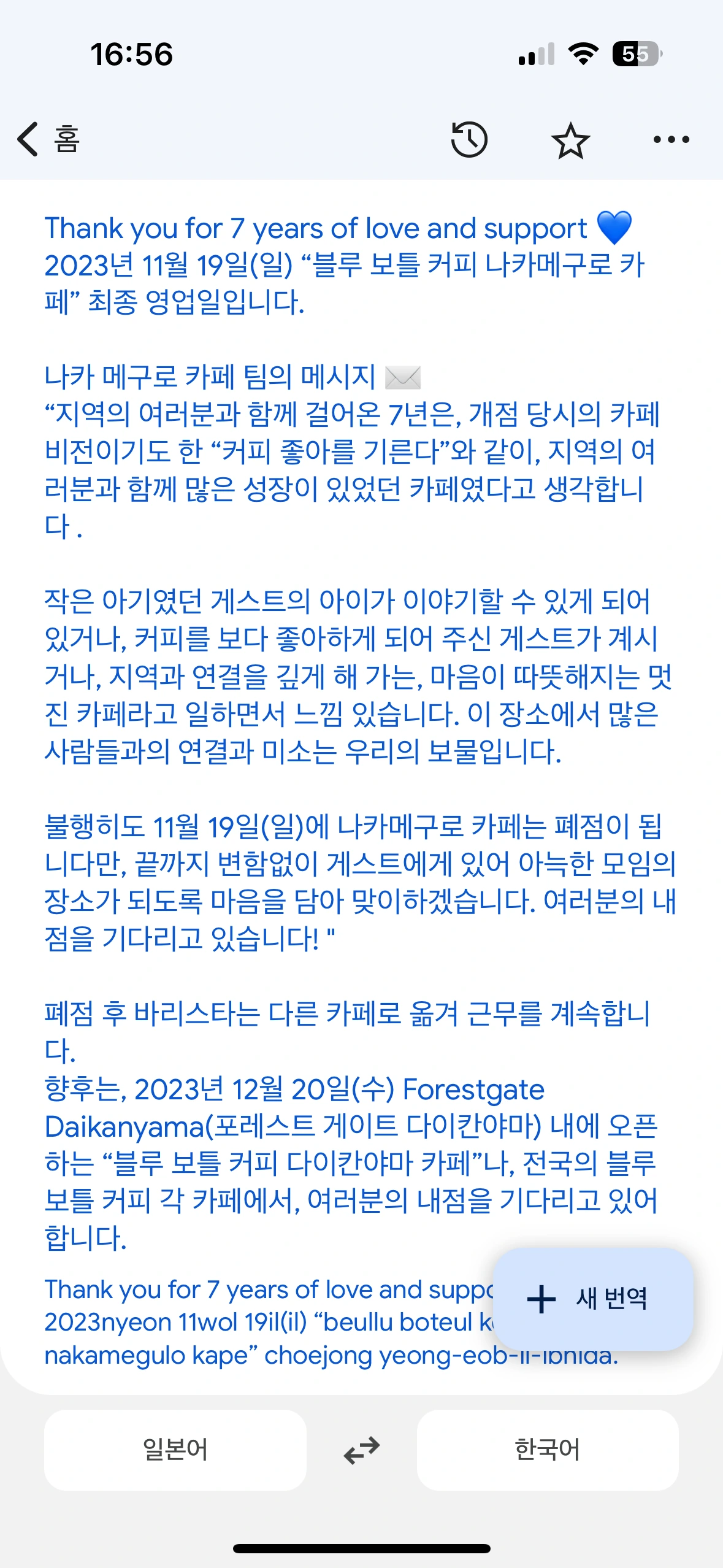 이번 도쿄여행에서 다녀온 블루보틀 나카메구로점이 111월 19일에 폐업했더라. 마을에서 눈에 띄는 집모양의 건물로 아기자기한 맛이 좋았는데 충격적이었다. 만나자마자 이별이라니 99% 다크초콜릿을 삼킨 듯이 씁쓸했다.