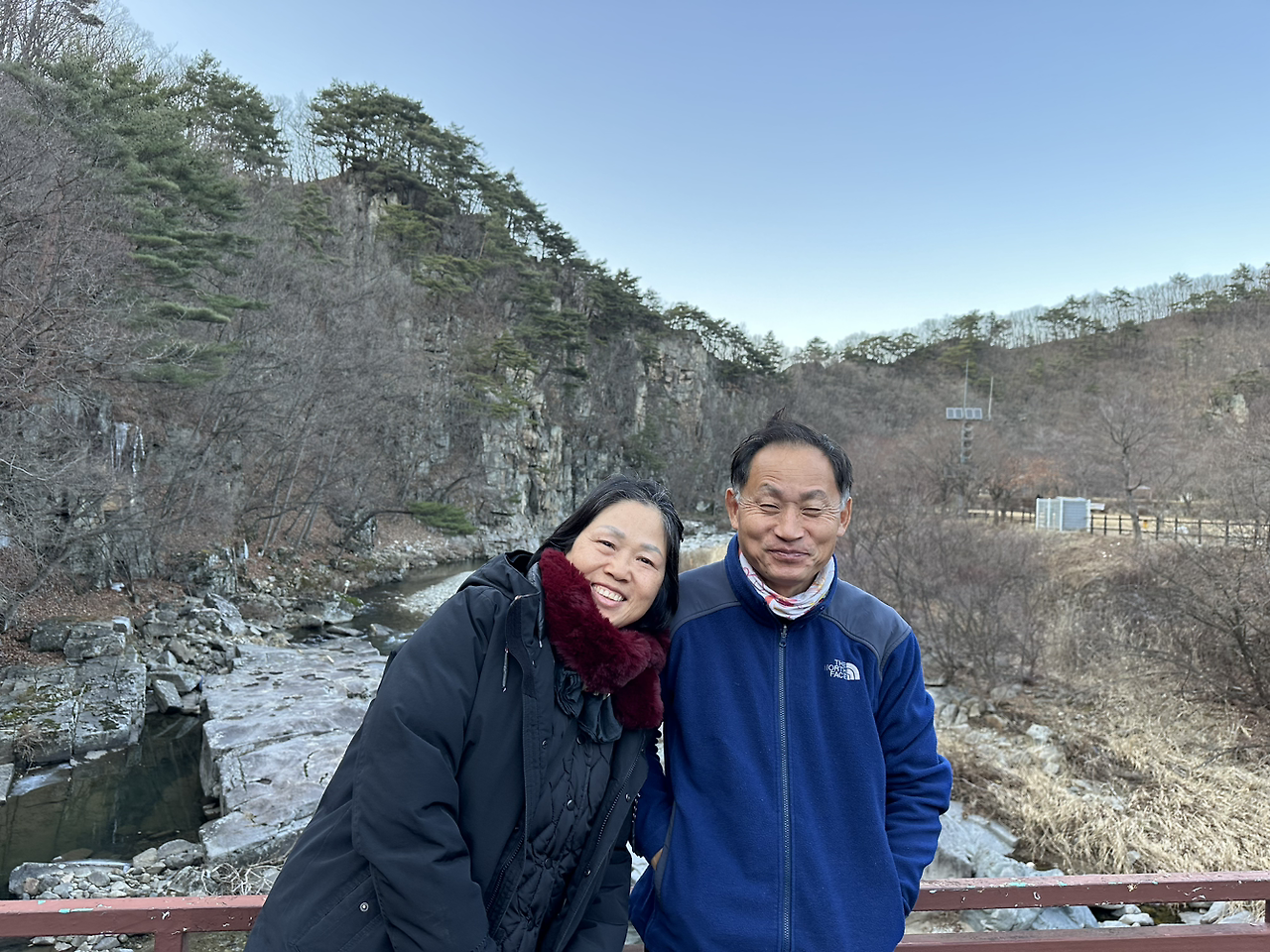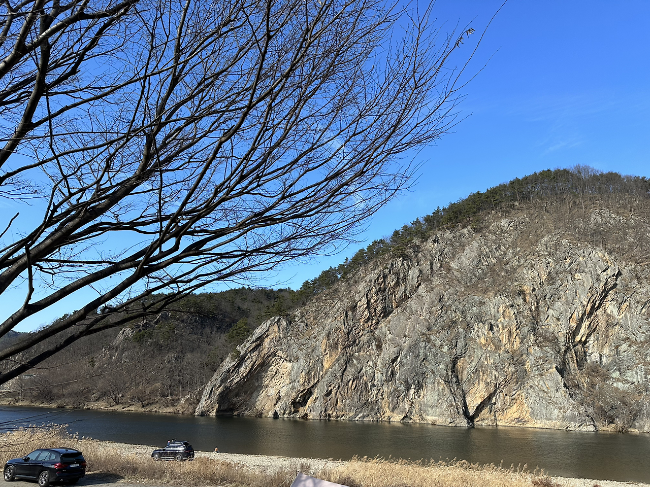 날이 추워서 절벽에 있는 폭포는 바짝 얼어붙었더라. 이런 날씨에도 곳곳에 캠핑하는 텐트가 즐비했다. 처음 들어봤는데, 이미 아는 분들에겐 소문난 캠핑맛집 같다.