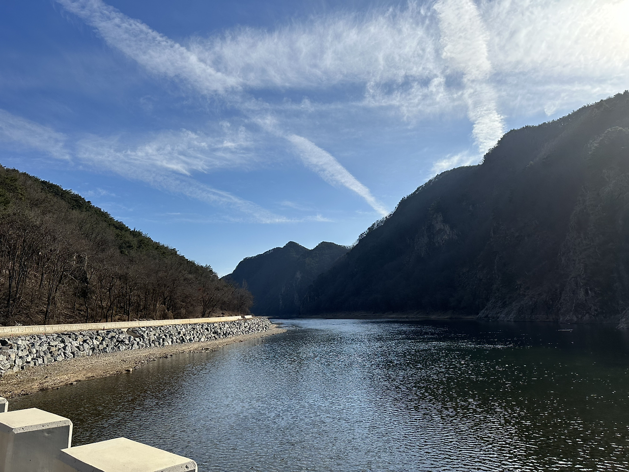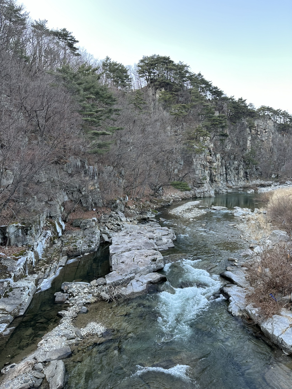강줄기를 휘감고 산으로 둘러싸인 위치가 대단히 신비로웠다. 세월이 깎여 절경을 만들어내는 절벽들을 보니 입이 쩍 벌어졌다. 자갈밭이 끝없게 펼쳐져있고, 돌들이 하나같이 반질반질한 게 보석처럼 빛났다.