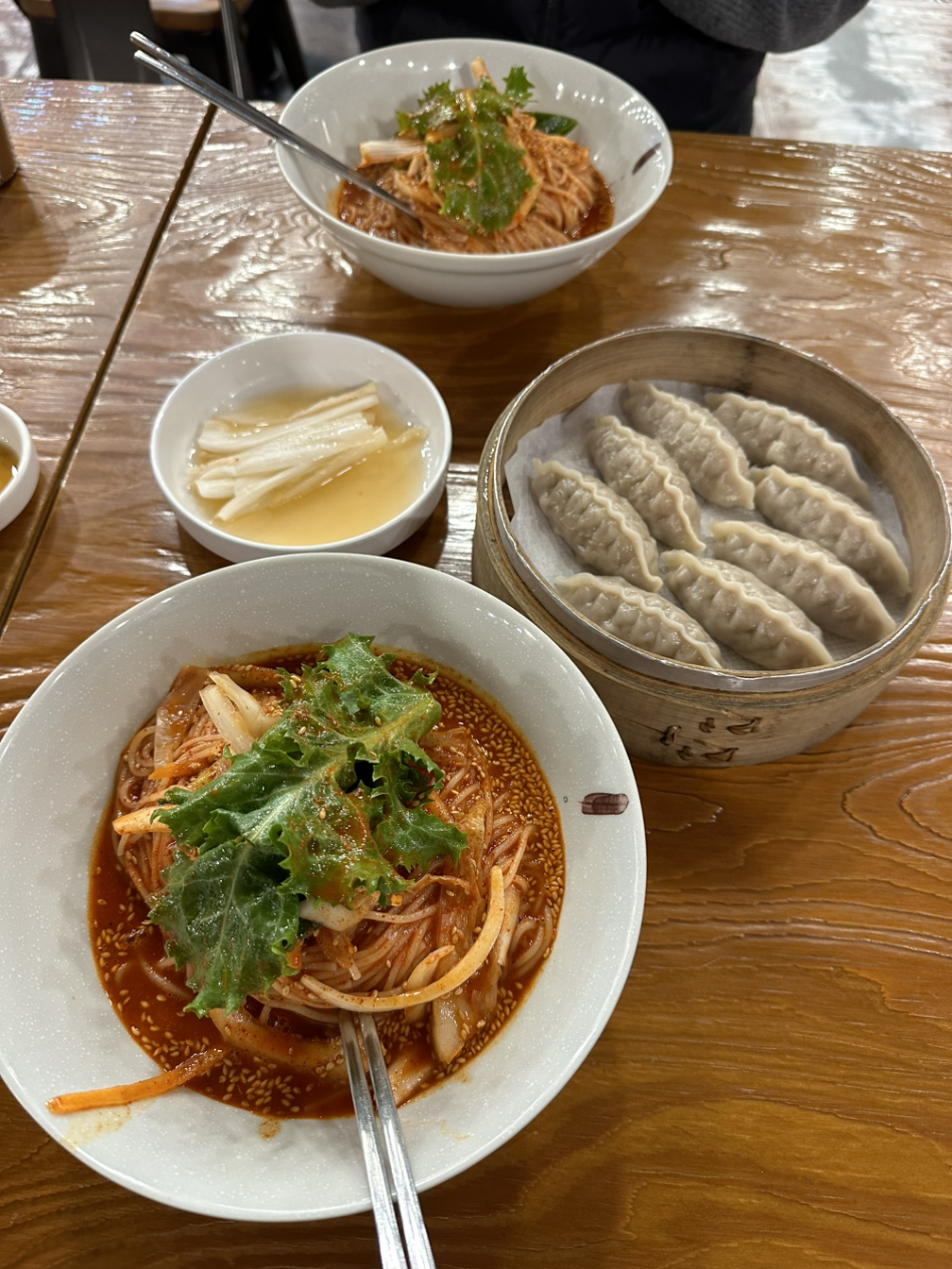들어가자마자 신속하게 비빔국수 두 개를 주문한다. 안내해 준 자리에 앉자마자 음식이 나온다. 음식 나오는 속도가 lte라 빨리빨리를 좋아하는 한국인에게 제격인 셈.