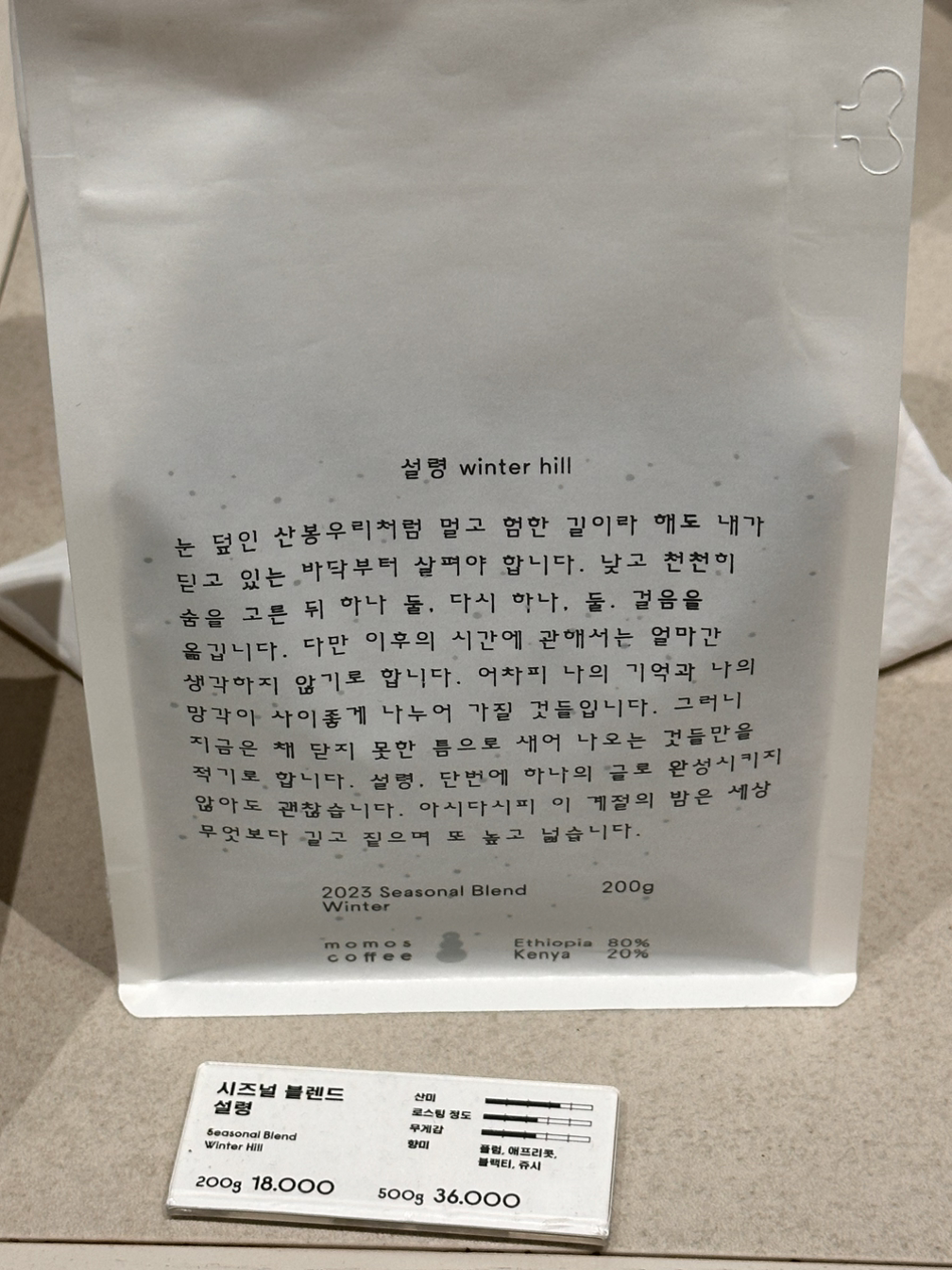 모모스커피의 대표 메뉴 중 하나인 모모스 맛사탕을 마시며, 상큼한 오렌지맛에 빠졌다. 처음 느껴보는 재밌는 맛이다. 마지막 모금에서 오렌지 과육이 씹히는 게 엄청난 여운을 준다.