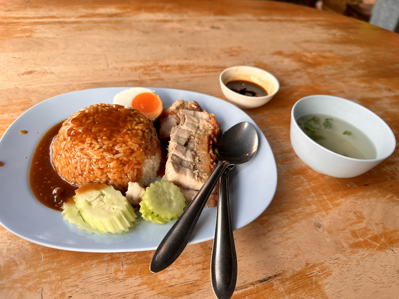 가장 먼저 생각난 태국음식이니 1일 차에 가기로. 1년 만에 다시 마주한 삼겹살 구이. 이미 유명한 맛집으로 한국분들도 많이 보였다. 이 맛이 생각나서 치앙마이에 다시 오고 싶을 정도란 구글지도 후기를 보고 반갑더라. 껍데기 기름이 쪽 빠져서 한 입 베어 물었을 때, 느껴지는 바삭함이 놀랍다.
