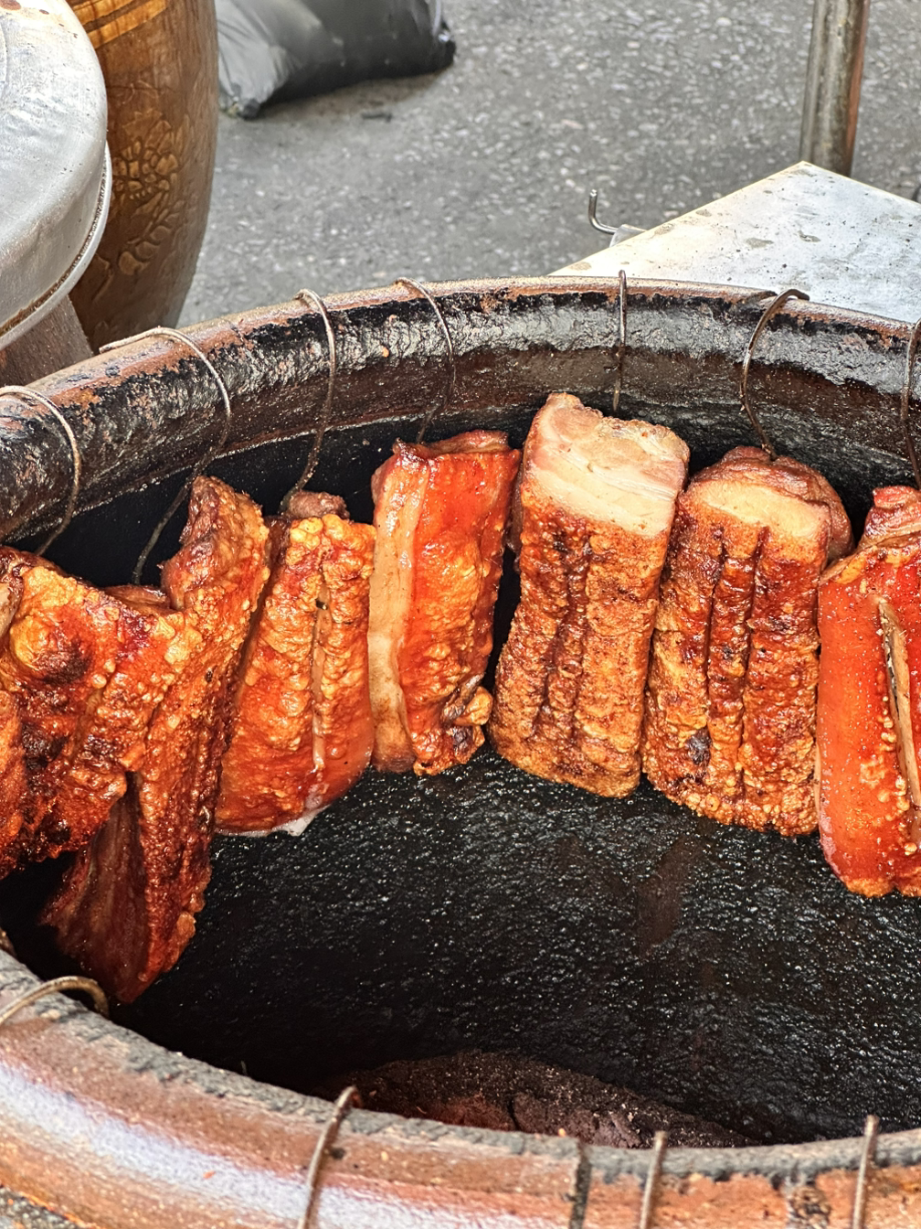 치앙마이에선 항아리 삼겹살 구이를 판다. 무껍(무:돼지, 껍:튀김)이라 부른다. 적당히 뜨거운 온도에서 기름이 쪽 빠져서 겉바속촉 그 자체다. 한국에서도 항아리에 삼겹살을 구워 먹는 시도들이 종종 보인다. 돼지고기를 워낙 좋아해서 나도 따라 해볼까 싶다가 그냥 치앙마이에 다시 왔다.