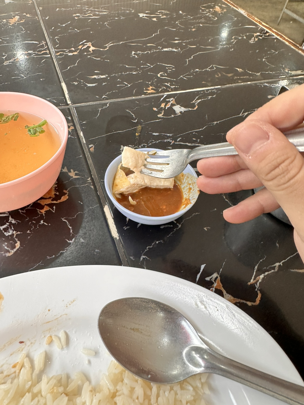 소스를 닭에 찍어먹는데 쌈장맛 비슷해서 감질맛 난다. 이제 나도 튀긴 것보다 이제 삶은 것을 좋아할 나인가. 카우만까이는 치앙마이 한 달 살기 하면서 부담 없이 즐겨 먹을 수 있는 음식임에 틀림없다.