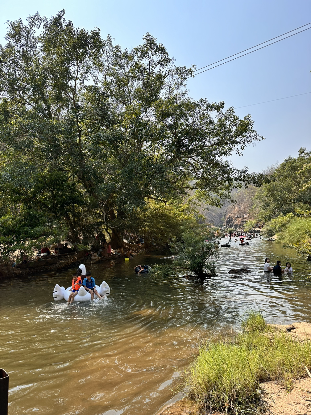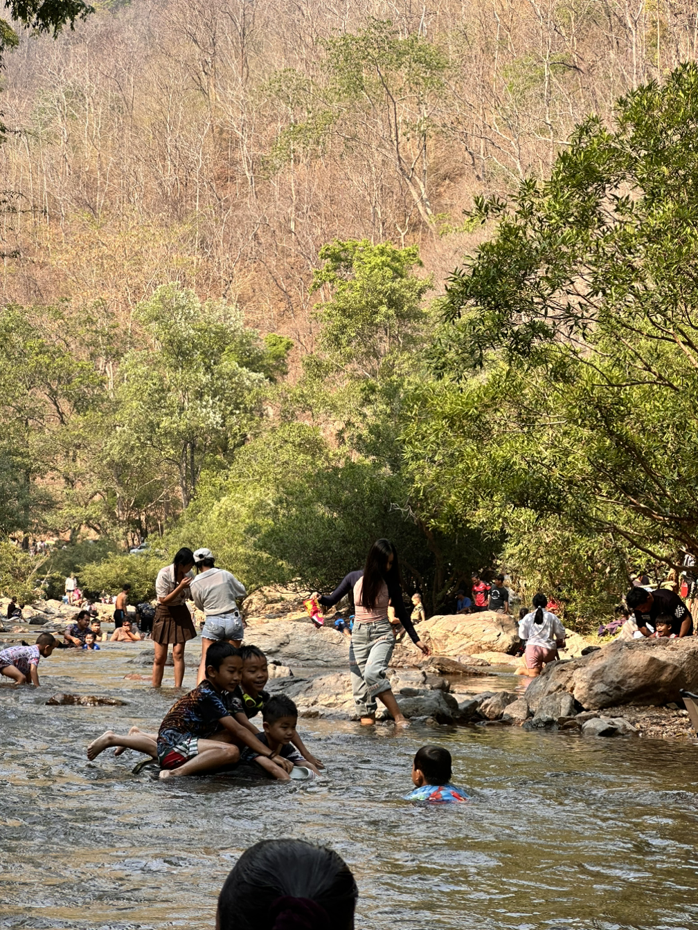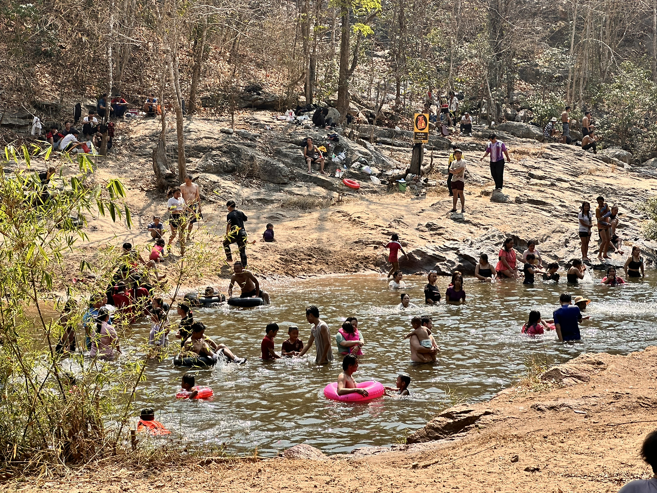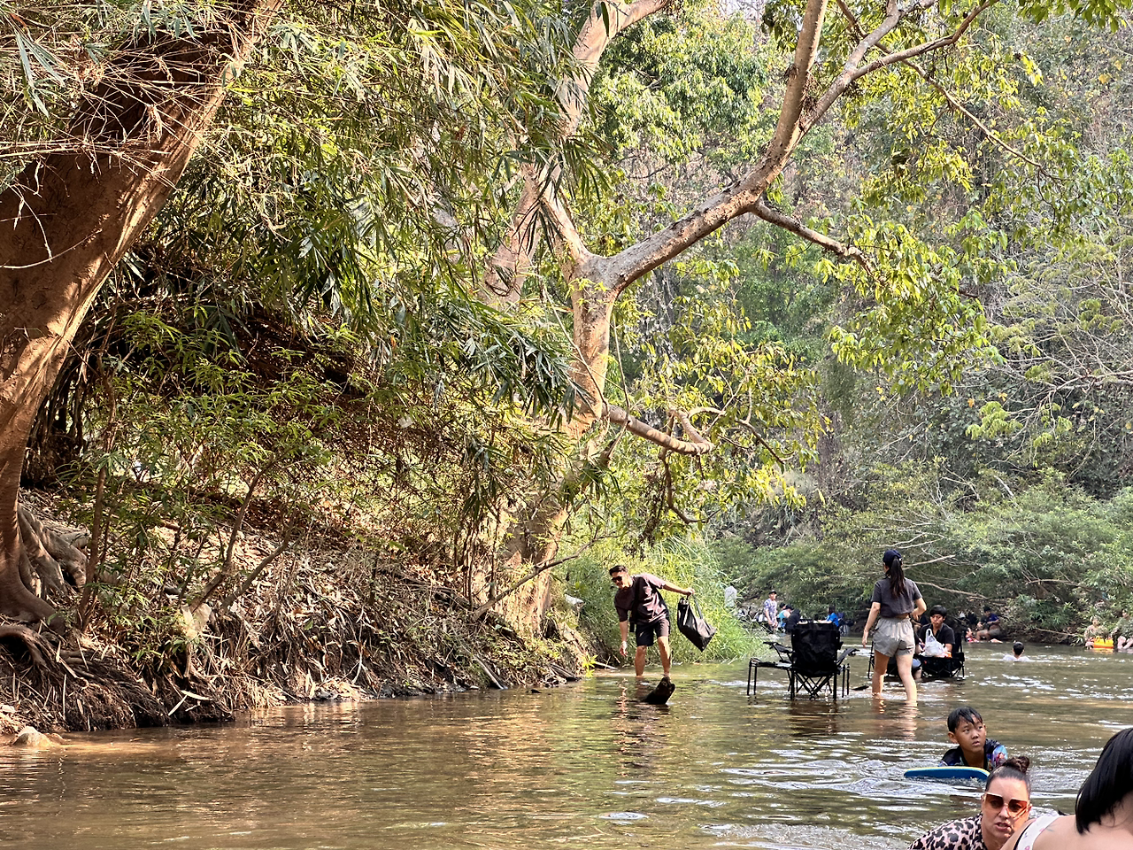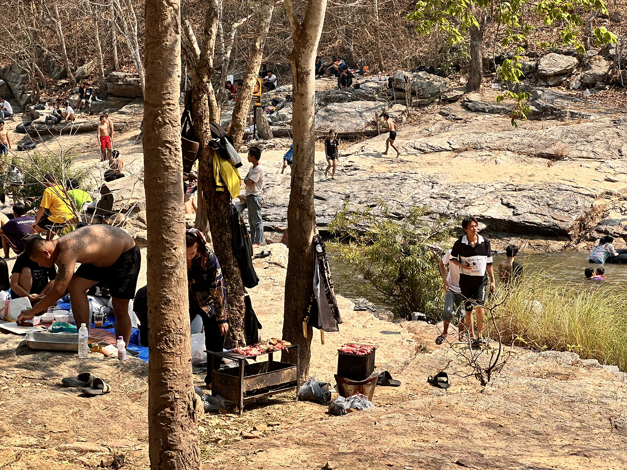여기 완전 핫플레이스인 게 폼의 오래전 친구도 우연히 물가에서 만났다. 태국 현지인들은 주말에 뭐 하고 노나 궁금했는데 궁금증이 풀렸다. 입장료는 없고 입구에서 이름만 적으면 입장 가능한 숲 속으로 피서를 오는 것이었다. 폼은 이곳을 내게 소개해준 스스로를 엄청 뿌듯해했다.