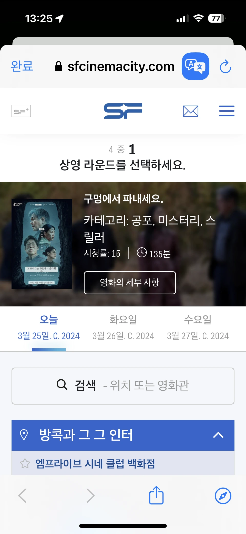 다행히 지난주에 태국에서도 파묘가 개봉했다. “구멍에서 파내세요.” 구글에서 번역한 파묘의 태국어 제목이 제법 직관적이다. 저녁시간 영화를 온라인으로 예매했다. 조금 무서운 영화는 역시 한여름의 어두운 밤시간에 봐줘야 제 맛 아니겠나.