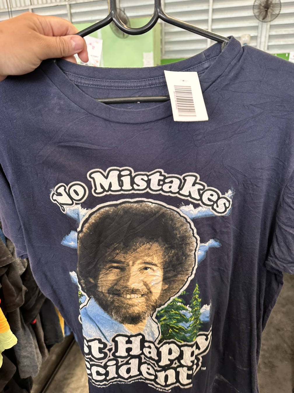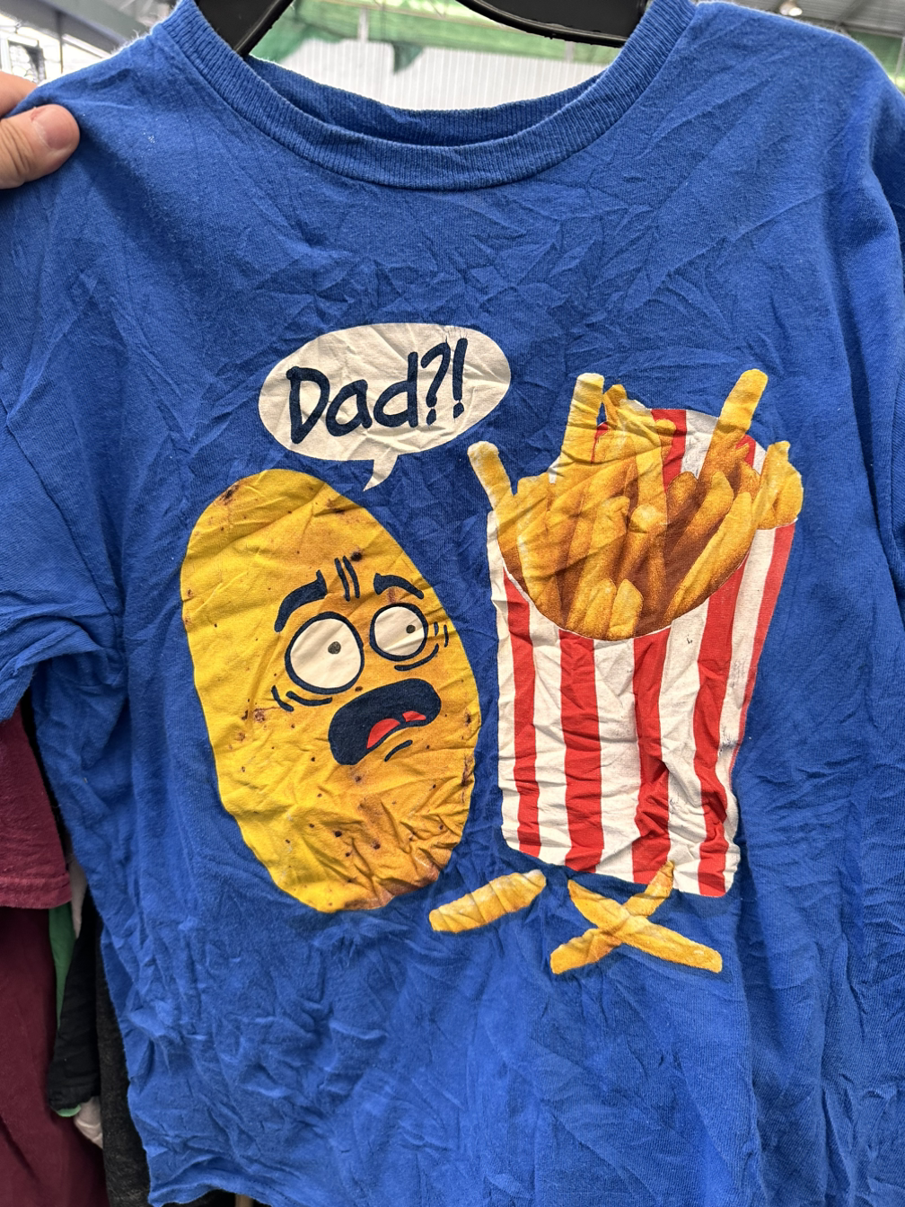 그래도 여기까지 왔는데 보물을 찾아야 한단 생각에 열심히 훑었다. 덕분에 2시간 내내 창고에서 헌 옷을 구경했다. 헌 옷에 그 시대 트렌드가 담겨있더라. 같은 티셔츠들이 여러 번 나오니 그만큼 인기 있는 캐릭터가 무엇인지 자연스레 알게 되었다. 티셔츠 제작자의 의도를 파악하는 재미가 쏠쏠했다.