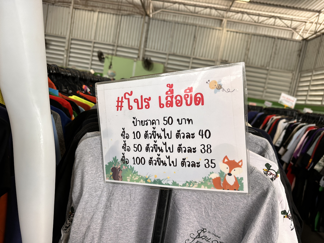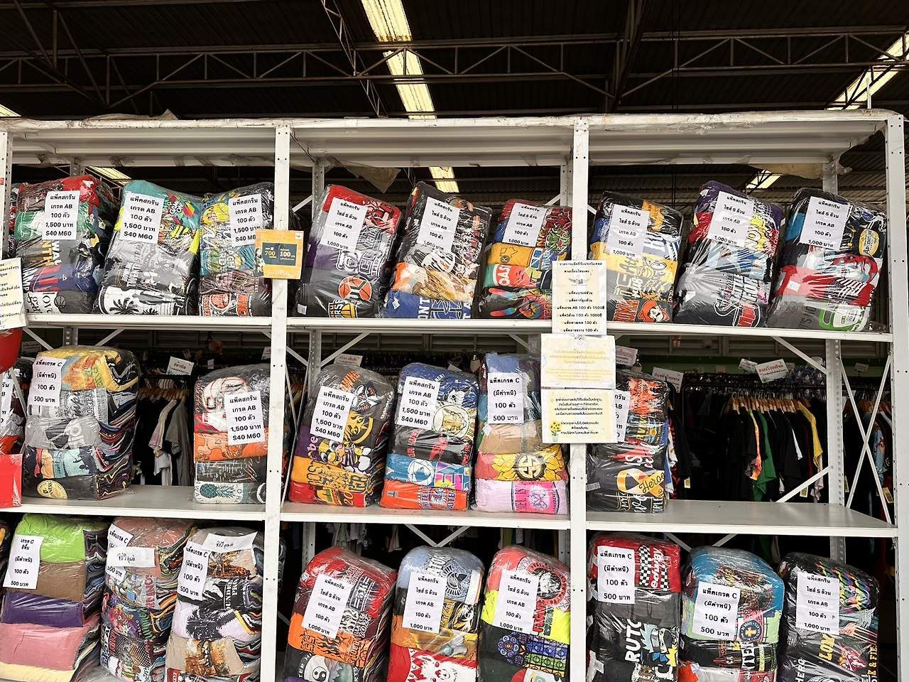입구부터 옷 더미째로 판매하더라. 많이 사면 할인된다길래 궁금해서 왔다. 근데 너무 오염되고 보풀 많은 옷들이 50밧 이상이라 실망했다.