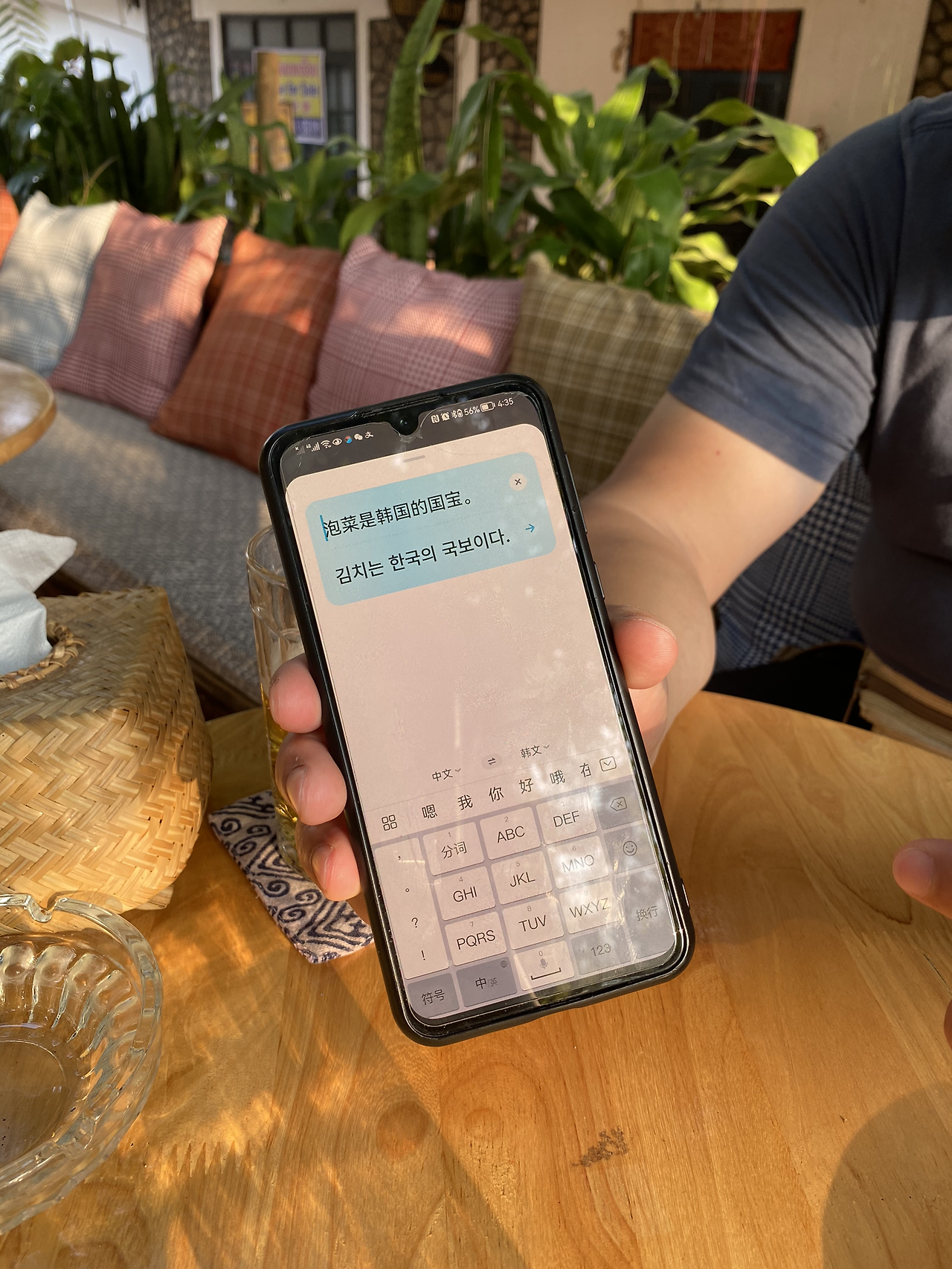 세상에 이런 일이! 환전소에 도착하기 5분 전, 가는 길목에서 어제 그 중국친구를 다시 만난 것이다. 친구는 혼자 맥주를 마시고 있었고, 내 얼굴을 알아보고 반가워했다. 대뜸 구글 번역기를 켜서 어제의 자초지종을 설명했다. 친구는 돈을 넣은 복대를 허리춤에 차고 있었다. 아예 어제의 사건을 모르는 눈치였다. 나의 속사포 같은 이야기를 쭉 듣더니, 자기가 얼마 돌려줘야 하냐며 물었다. 그는 나에게 9만 낍을 원래대로 돌려줬다.