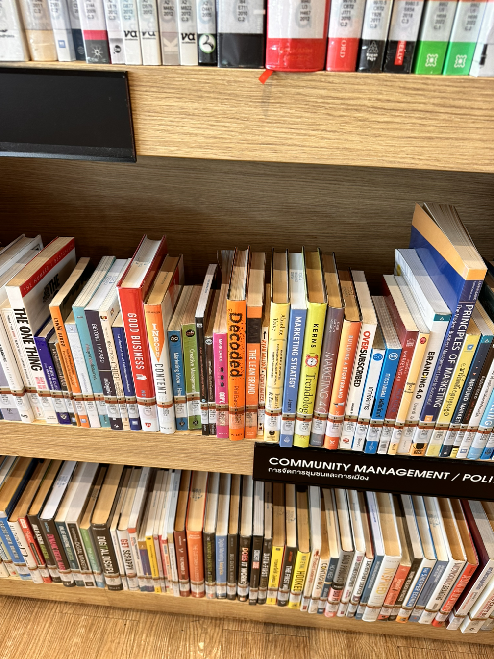 가디건이 필요할 정도로 에어컨을 세게 틀어줘서 바깥의 한낮더위를 새까맣게 잊었다. 보통은 에어컨, 와이파이, 콘센트 셋 중에 뭐 하나가 부족하더라도 감안하고, 카페에 누가 되진 않을까 눈치보며 머무는 게 일상이다. 하루 100밧에 어느 것 하나 모자람 없이 월요일을 제외하고 아침 10시 반부터 오후 7시까지 머물 수 있다니. 디지털노마드에게 최적의 장소가 아닐까. 그냥 왜 그럴까 궁금함에서 끝날 정보들이 담긴 전문서적이 많아서 내가 학생이라면 연간권 끊어서 나만의 스터디카페로 이용했을 것 같다.
