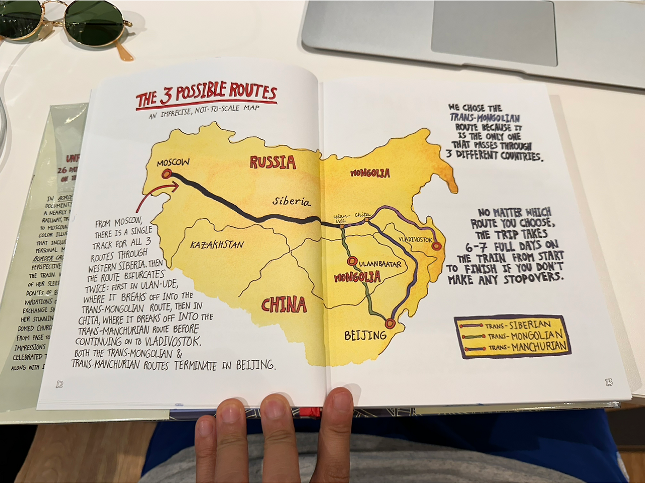 이름 모를 외국인이 쓴 시베리아횡단열차 여행기를 보고 빠져들었다. 그림이 예쁘고 내용이 자세해서 책장을 계속 넘기게 되더라. 글보다는 컬러풀하고 그림이나 사진이 많은 책이라 반가웠다. 내가 모르는 세상을 하나 알았으니 그걸로 충분한 발견이었다.