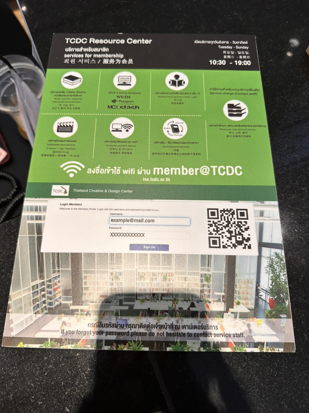 드디어 TCDC(Thailand Creative&Design Center)에 첫 방문한 날. 입장료가 하루권은 100밧(4천 원)이고, 1년 정기권은 1,200밧(4만 8천 원)이라 고민됐다. 로컬 기준 한 달에 한 번쯤은 와야 뽕을 뽑을 수 있는 공간인 셈. 내겐 치앙마이 세 달 살기 중 두 달이 남은 상황이라 시간은 충분했다. 거기다 먼저 방문한 이들의 평가가 모두 좋아서 1년 정기권을 끊을까 싶었다.