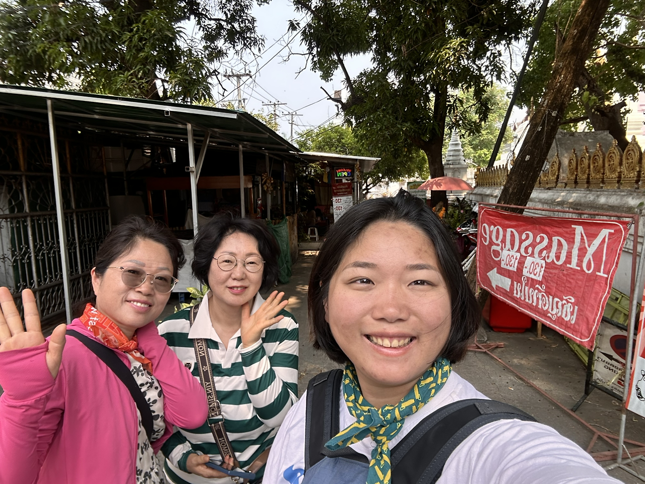 아쉬운 맘을 뒤로한 채, 엄마 맞춤여행엔 1일 1 마사지는 받아야 하기에 왼쪽 마사지집으로 향했다. 여기도 이미 만석. 다만 10분 뒤에 1명, 30분 뒤에 1명, 1시간 뒤에 1명은 가능하단 희소식이 들렸다. 약간의 기다림 끝에 엄마랑 이모는 2시간, 나는 1시간의 타이마사지를 받을 수 있었다.