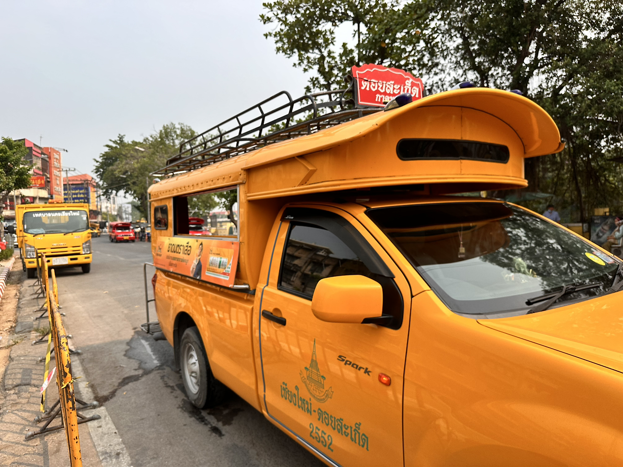 아침부터 와로롯마켓에 갔다. 바로 노란 택시를 타기 위해서다. 평소엔 Maxim 앱으로 개인택시 불러서 편하게 승용차로 이동하는데, 싼캄팽 온천은 멀어서 요금이 부르는 게 값이다. 마음 편하게 정찰제 택시인 노란 트럭을 타기로 한 것. 사방이 뚫리고 중간중간 손님이 있으면 멈춰선다는 게 함정.