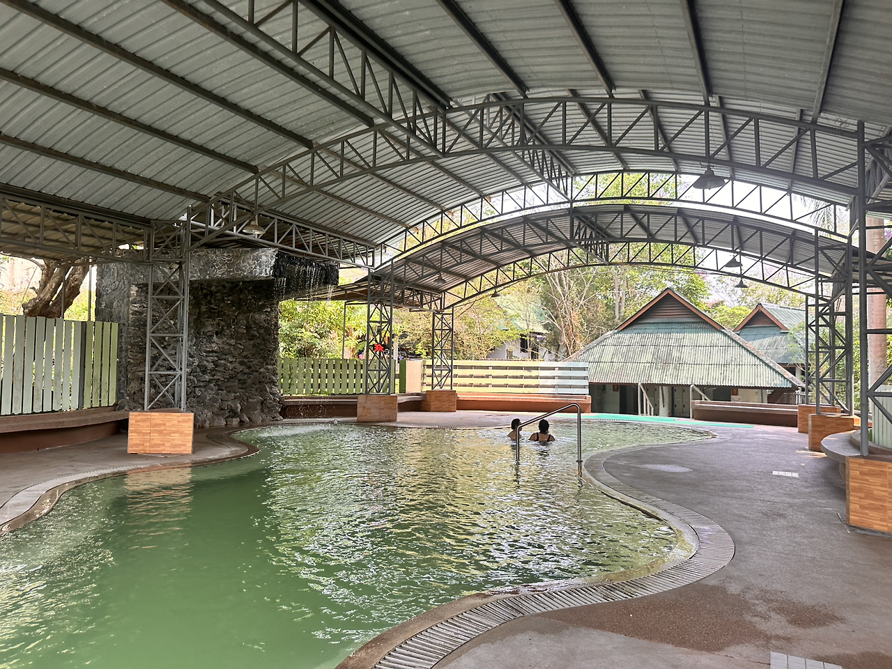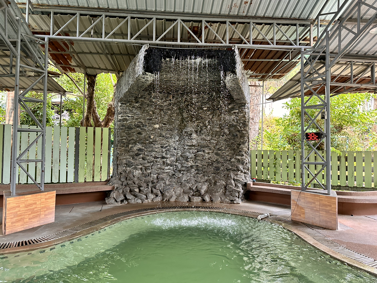 100% 잘 익은 계란을 들고 수영장에 입장했다. 미네랄 온천 수영장은 입장료 100밧을 따로 내야 한다. 지붕이 튼튼하게 둘러있어서 햇빛 피해서 온천을 즐길 수 있더라. 거기에 사람 온도와 비슷한 38도라 딱 즐기기에 적당했다.