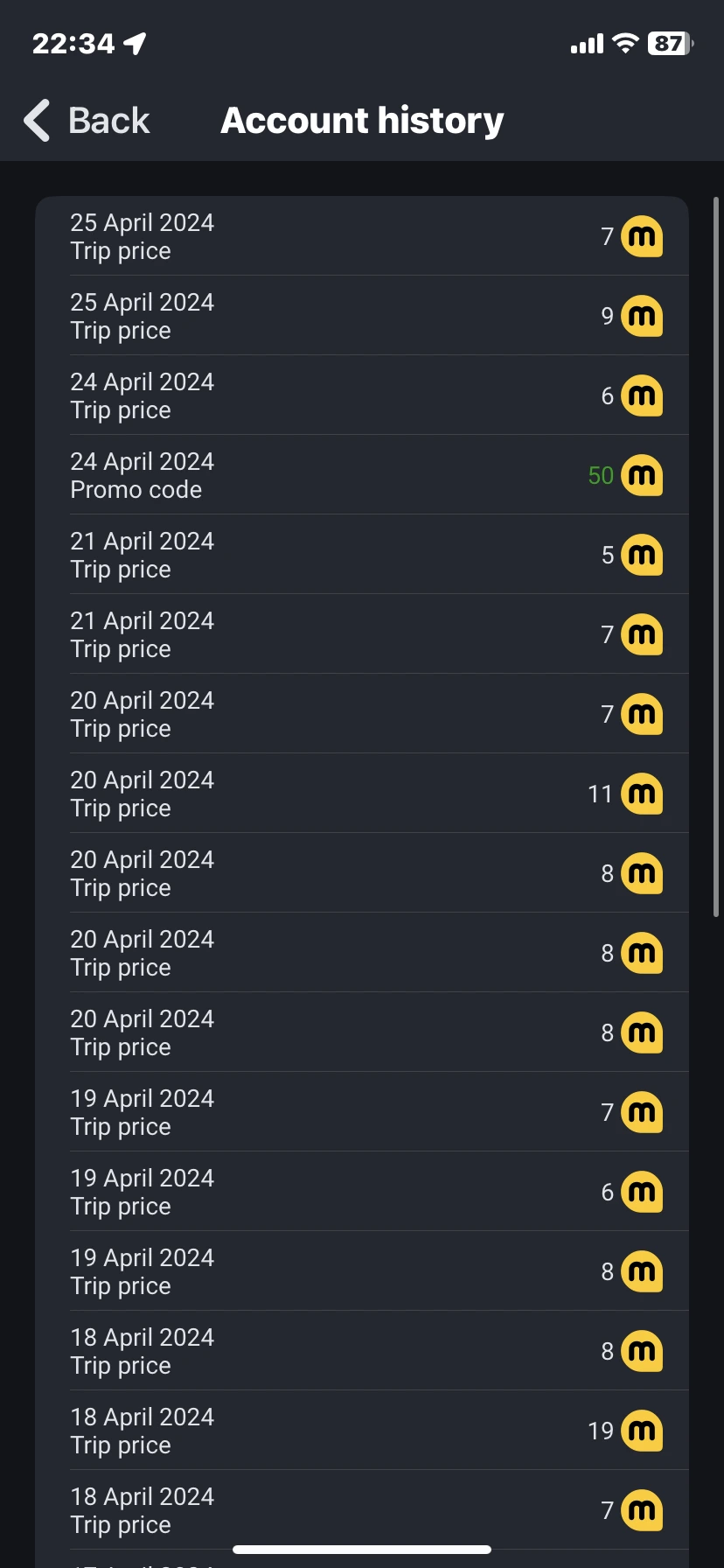 할인 혜택을 최대로 이용하려면 최소 10번 이상은 막심 어플을 사용해야하는 거다. 근데 이게 홍보가 잘 안되었는지 대부분의 기사들은 이런 할인혜택이 있음을 인지하지 못하고 있었다. 기사 앱에는 큼지막하게 전체 택시비가 떠 있어서, 고객은 할인된 금액을 지불하면 돈이 모자르다며 더 달라고 하는 해프닝이 자주 발생했다. 난 내 화면의 할인금액을 보여주거나, 기사어플화면에 작게 쓰인 할인금액을 가리키고서야 해결되었다.