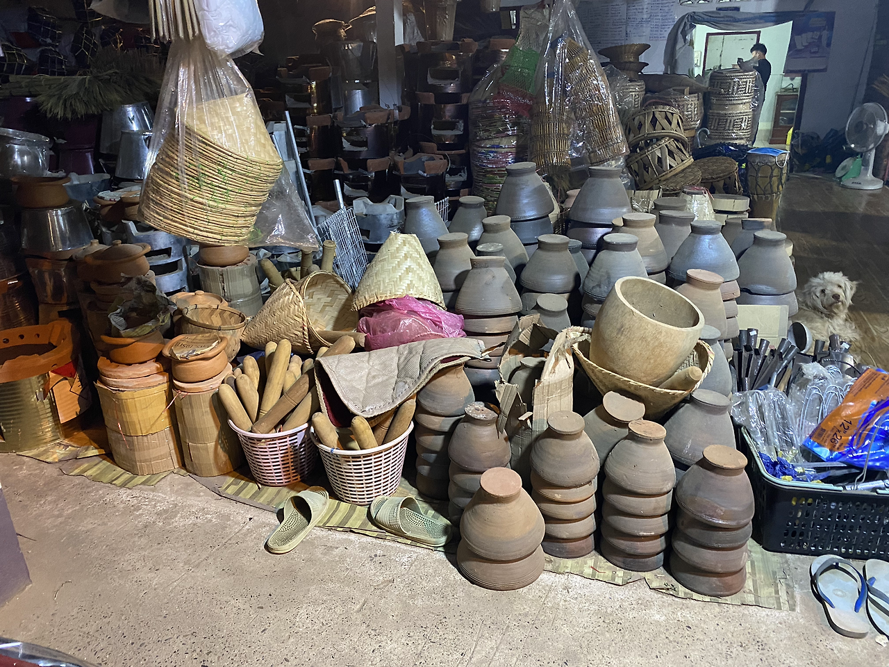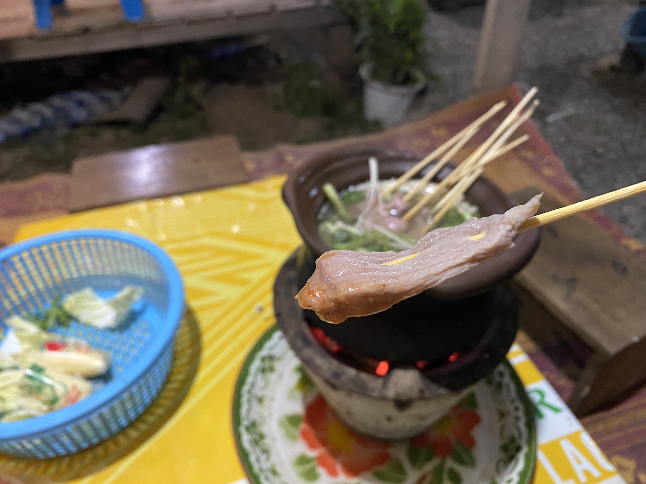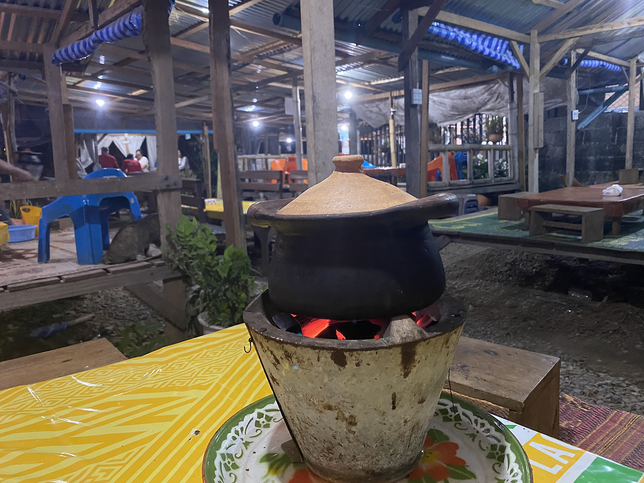길을 걸을 때, 주변에 무엇을 파는지 유심히 살피는 편이다. 항아리가 뒤집어진 걸 보고 저건 뭐에 쓰는 물건인고 궁금했었다. 며칠 뒤, 식당에서 그 정체를 알 수 있었다. 라오스인이 사랑하는 전통음식 신쭘(샤부샤부)였다.