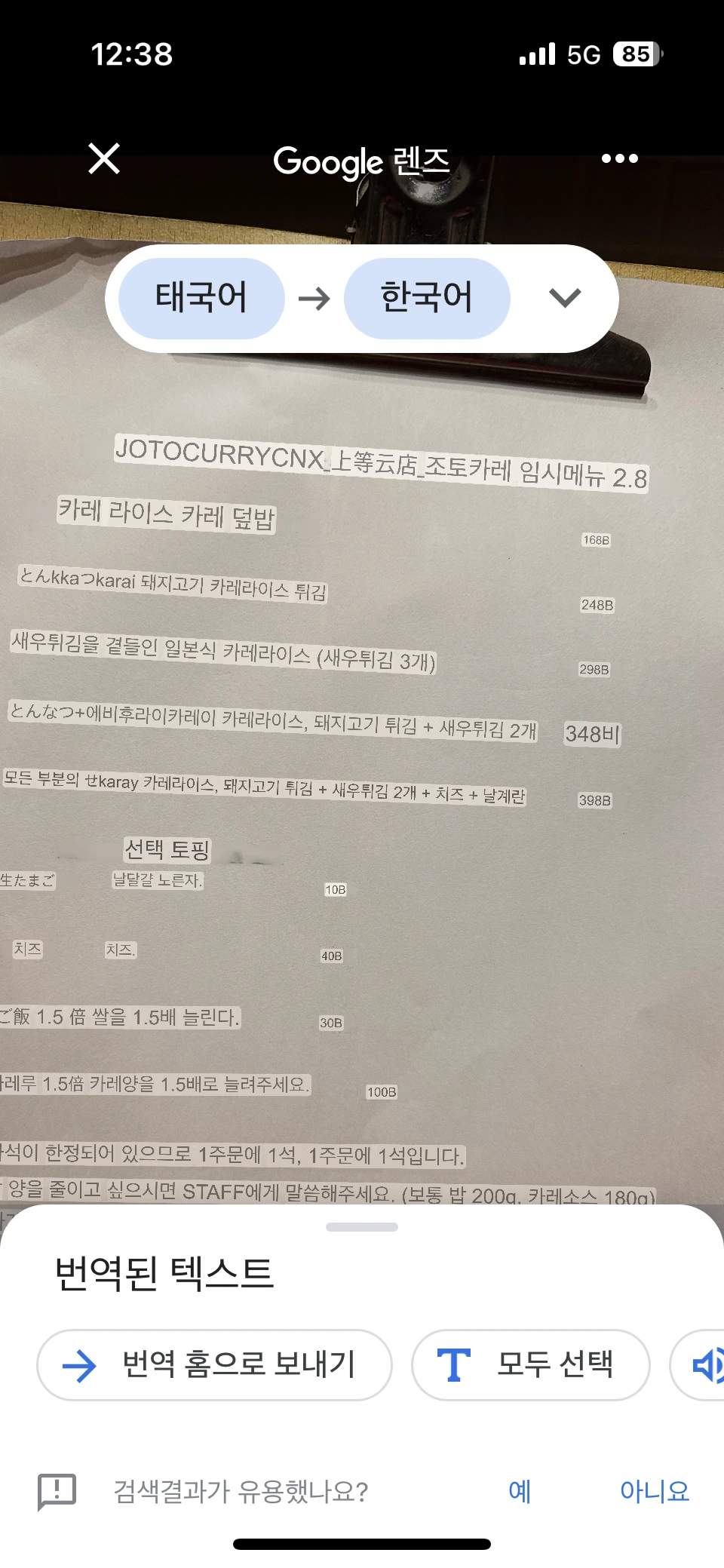 새우튀김에 돈가스에 계란 노른자 올라간 가장 비싼 카레를 주문했다. 가격은 398밧. 한국돈으로 1만 6천 원 선으로 비싸다. 사실 맛있는 걸 다 넣었으니, 맛이 없을 수가 없는 조합이지 않나. 할머니가 항상 하시던 말씀이 떠올랐다. 고기를 넣으면 다 맛있다.
