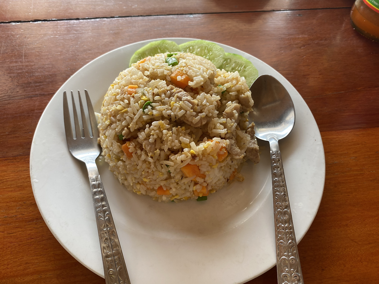 혼자 여행의 단점은 겁이 많아진다는 것이다. 탐짱동굴은 방비엥 읍내에서 쉽게 걸어갈 수 있다고 해서 다녀왔다. 금강산도 식후경이라는 말을 충실히 따라 밥부터 먹는다. 사장님이 고봉밥을 주셨다. 시작이 좋다.