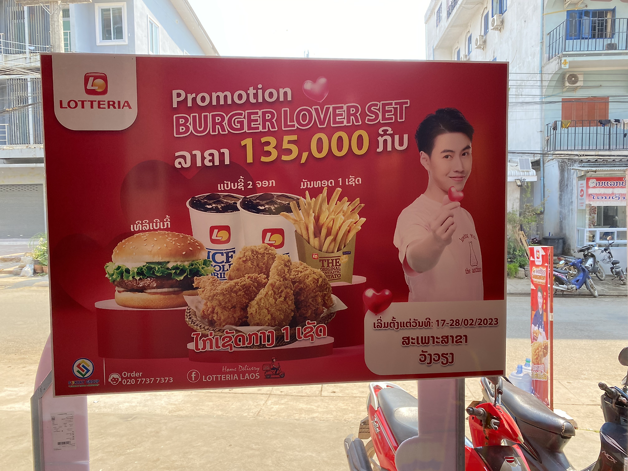 라오스에서 롯데리아는 천천히 성장 중이다. 이미 비엔티안에 4곳이 운영 중이고, 지난해에는 루앙프라방에도 오픈했다. 이 기세를 몰아 올해 초 방비엥까지 문을 연 것이다. 벌써 라오스에 6개의 롯데리아 점포를 확보한 셈!
