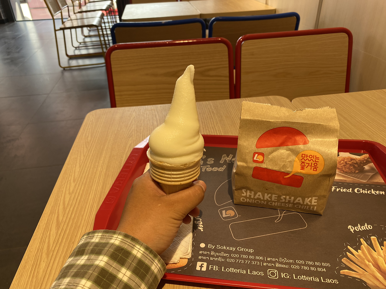 우선 대대한 세트구성보다 소소한 단품메뉴를 바깥 가판대에 적극 홍보하면 문간에 발 들여놓기 더 쉽지 않을까? 소프트아이스크림이 한국보다 고소하니 맛있었다. 이걸 7천 낍이 아니라 5천 낍(400원)으로 하면 어떨까.