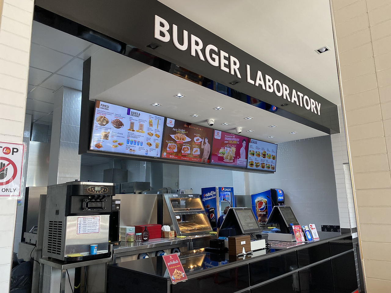 소프트 아이스크림 콘 하나 정도는 괜찮잖아 싶은 마음에. 버거 실험실에 입장했다. 방비엥 시골 동네에 최신식 깔끔한 매장이 좋은 인상을 주었다. 엄청 자리가 많아서 자리가 없어서 못 먹고 돌아서는 불상사는 없을 것 같아 희망적이었다. 밖에서 생각했던 것보다 메뉴들이 한국과 비슷한 편이었다. 라오스 물가치고 저렴하진 않지만 쾌적한 환경에서 내가 아는 맛을 먹을 수 있다는 안전한 선택지가 될 수 있겠다.