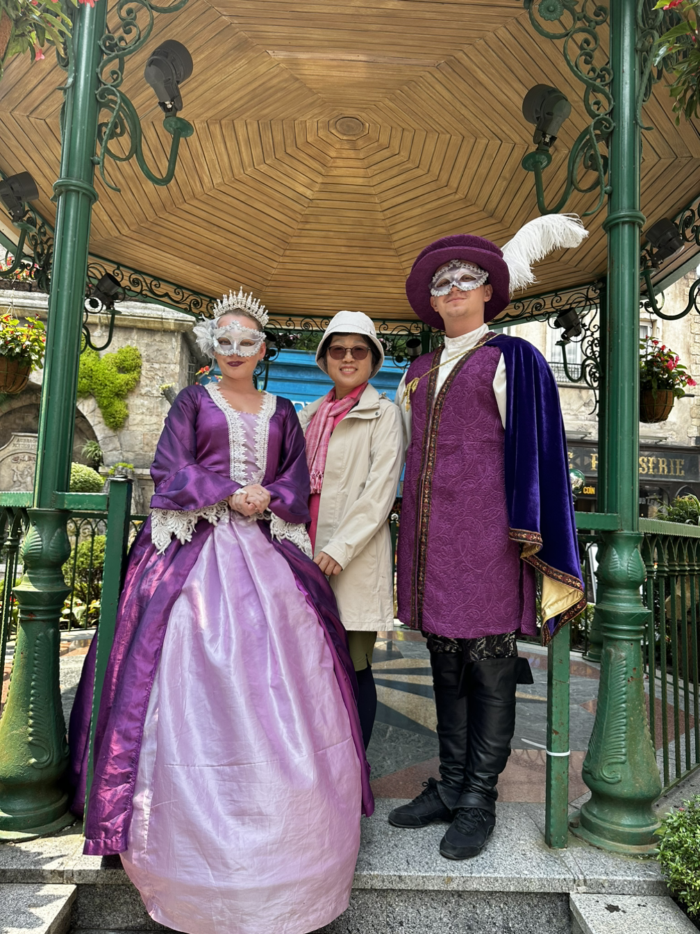 현란한 중세유럽 복장을 입은 놀이동산 직원들이랑 사진도 찍었다. 엄마는 내가 엄마의 보호자가 된 것 같다며 아이처럼 즐겼다. 어릴 땐 내가 엄마 따라 놀이동산에 갔는데, 크니까 내가 엄마를 모시고 놀이동산에 오다니 기분이 묘했다.