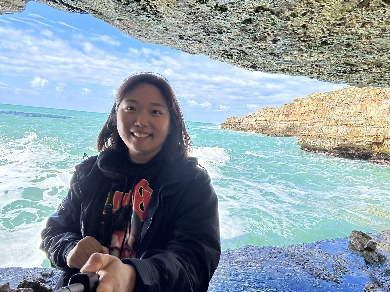 발을 물에 담그자마자 얼 것 같은 차가움이 에워쌌다. 짧은 터널을 나오니 멋진 풍경이 파도치고 있었다. 보물 같은 풍경에 발 담그길 잘했다고 생각했다. 감탄하면서 사진을 남기는데 갑자기 파도가 들이쳤다. 다가오는 무서운 파도에 소리를 꺅 지르는 것 말곤 할 수 있는 게 없었다. 여기 왔다고 사진은 찍고 싶었으니까. 바지가 흠뻑 젖었다. 노르마도 뒤늦게 합류해서 같이 파도맛을 제대로 봤는데, 추위를 이 아름다움을 함께할 수 있어 기뻤다.