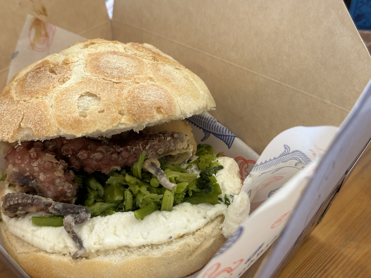 날씨가 춥고 차가운 물에 젖어서 그런지 배가 더 극심하게 고팠다. 레미가 미리 찾아본 레스토랑에서 문어버거를 먹었다. 풍미 가득한 맛에 따로 자릿세를 안 받아서 더 즐겁게 식사를 할 수 있었다. 일반적으로 자릿세를 받는 이탈리아지만, 예외의 경우도 분명히 있는 것이다. 그래서 영원한 것은 없으며, 언제든 상황이 바뀔 수 있으니 뭐든 단언할 수 없음을 또 깨닫는다. 어제는 맞고, 오늘은 틀리듯. 가능성을 열어두는 게 어떤 일이든 필요함을 배운다.