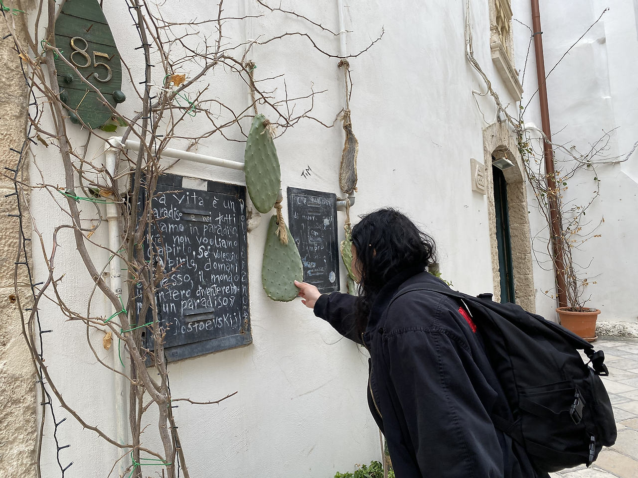 바리로 돌아가는 기차 시간이 좀 남아서, 기차역 근처 카페에 들어갔다. 책이 한편에 많이 꽂혀있고, 나오는 음악이 몸을 둠칫둠칫하게 해서 즐거운 시간을 보냈다. 에스프레소 1잔을 주문했는데, 1유로더라. 여기도 자릿세를 안 받아서 이 동네는 자릿세가 없는가 싶기도 했다. 왓츠앱에 서로를 추가했다. 전화번호로 친구 등록하는 게 불편하더라.