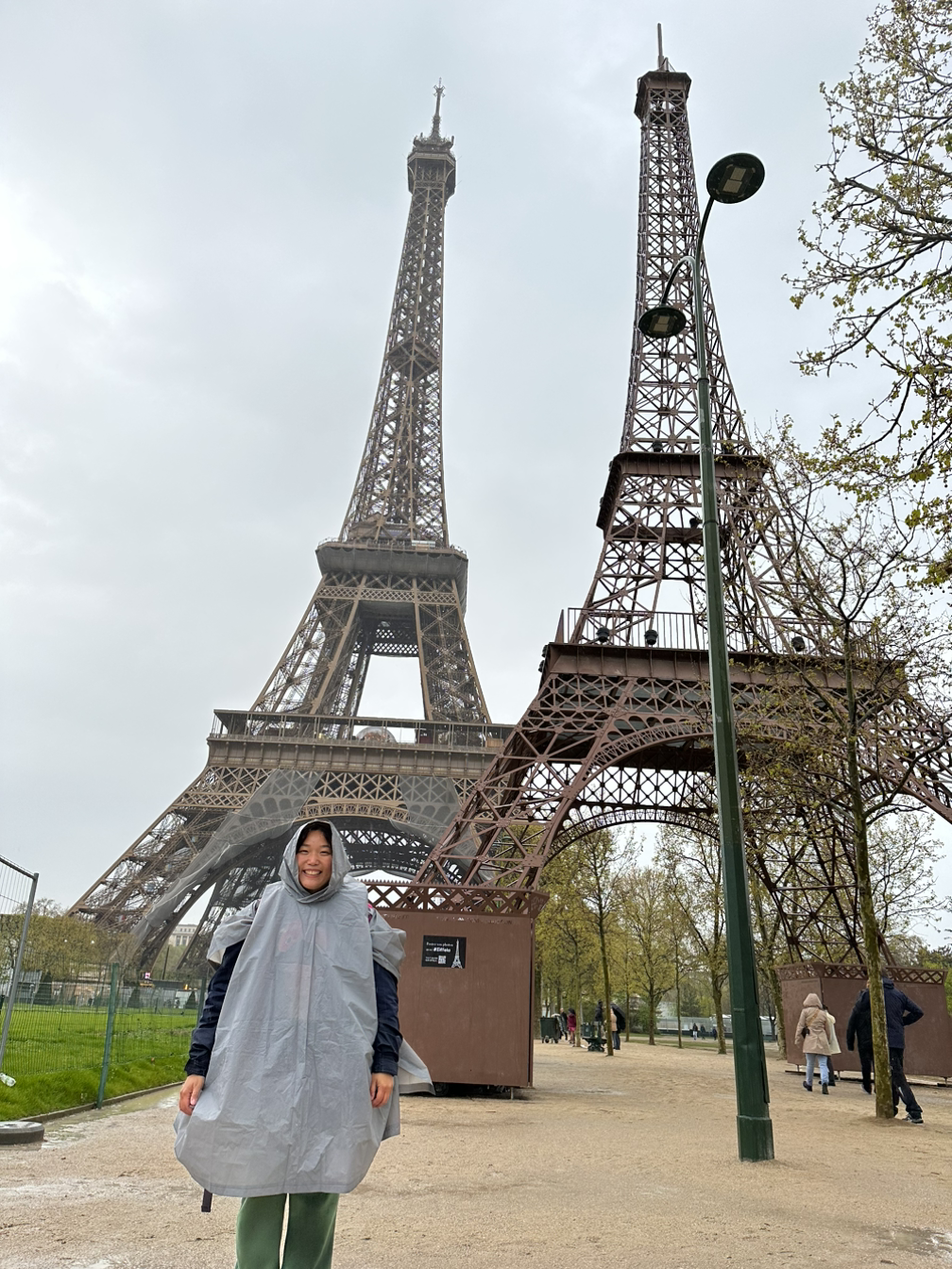 에펠탑이 잘 보이도록 기념사진을 찍었다. 비 때문에 지나가는 사람이 없어서 혼자 셀카를 찍었다. 팔이 짧아서 얼굴만 크게 나오고 뭔가 아쉬웠다. 그래도 여기까지 왔는데 사진은 제대로 남겨야 하지 않겠나. 배낭 메고 사람들 있는 쪽으로 찾아가서 사진 찍어달라고 했다. 참고로 사진은 커플한테 부탁하면 흔쾌히 찍어준다. 처음엔 쭈뼜대며 사진 찍어달라고 부탁했는데 나중엔 먼저 사진 찍어주는 여유도 생겼다.