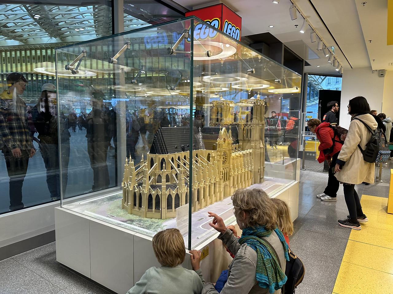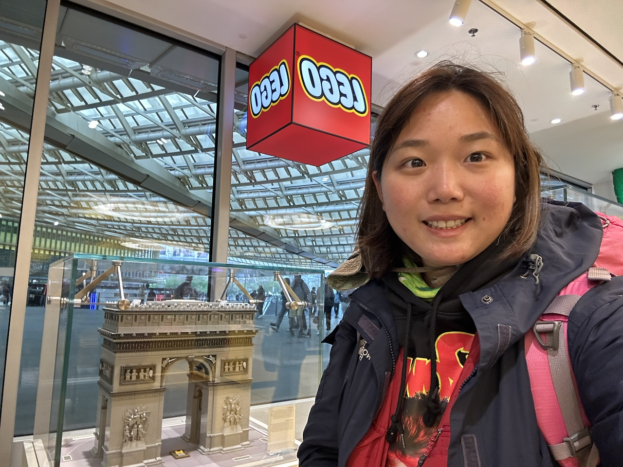 입구에 들어서니 에펠탑, 노트르담대성당, 개선문이 모두 레고로 있었다. 레고매장에 오면 파리 관광을 다 할 수 있다. 레고 앞에서 기념사진을 찍었다. 이탈리아 바리, 이탈리아 토리노에 이어 세 번째 유럽 레고매장 방문이다. 이미 똑같은 레고를 여러 번 봤기 때문에, 감흥이 없었다. 그나마 프랑스 파리 특별 레고만 눈이 가더라. 진짜 사고 싶은 건 레고손목시계뿐이다. 이미 8년이 지나서 이제 단종된 것 같지만 아른거려서 계속 방문하게 된다.