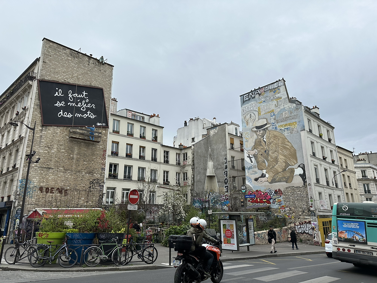 파리는 자꾸 걸음을 멈칫하게 하는 것들이 많았다. 바게트를 하나씩 품고 다니는 사람들. 빵집에 줄 선 사람들. 자전거나 킥보드 타는 사람들. 뽀뽀하는 사람들. 노래하는 사람들. 노래에 춤추는 사람들. 활짝 핀 핑크색 벚꽃 맛있는 음식 내음. 예쁘게 진열된 물건과 상점들. 멋진 그라피티. 고딕 성당. 테라스에 자리 잡고 커피를 마시는 사람들. 광장에서 스케이트 보드 타는 사람들. 공원에서 탁구 치는 아빠와 아들. 이것이 파리의 낭만인가. 오랜만에 온 파리는 특별히 무엇을 하려 하지 않아도 충분히 새로움을 발견하게 되었다.