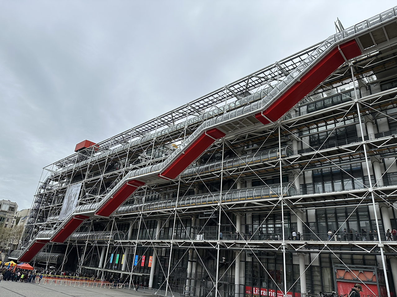 이번에는 퐁피두센터에 가고 싶어졌다. 건물을 지탱하는 철제 기둥 구조물을 모두 외부로 설계해 독특한 건물이다. 옛날엔 퐁피두센터 쪽에 분수가 흘렀는데 보수 중이라 아쉬웠다. 퐁피두센터는 부활절 주말 마지막날이라 그런지 더 붐볐다. 유명한 전시가 열리는지 입장 줄이 길어서 들어갈 엄두도 안 냈다.