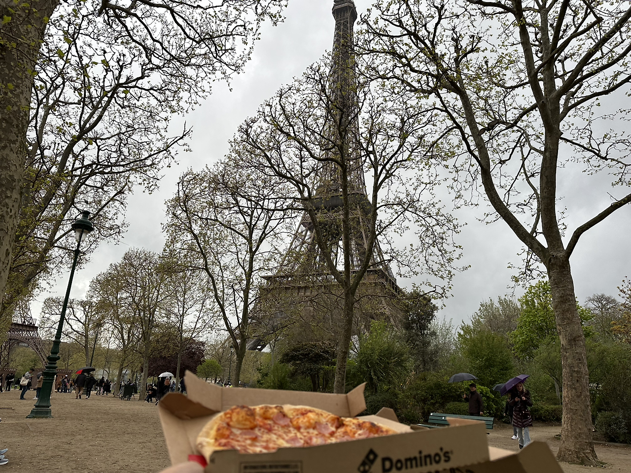 에펠탑 도착하기 20분 정도가 남았을까? 도미노피자가 보였다. 6유로짜리 피자를 판다고 해서 에펠탑에 가서 먹을 생각을 했다. 도미노피자 옆 마트에 가서 사이다를 샀다. 에비앙 생수가 사이다보다 더 싸더라. 왜 프랑스 사람들이 에비앙 먹는지 이제 알겠다.