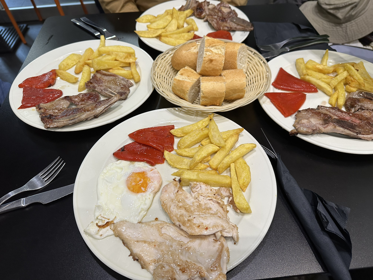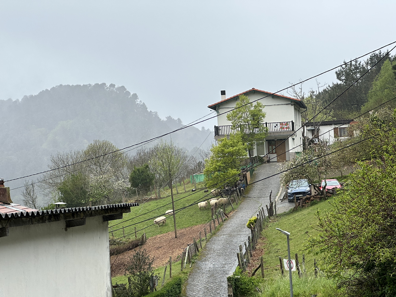 14명만 잘 수 있는 알베르게에 낮 12시에 일찍 도착했다. 오후 4시에나 숙소가 열리기 때문에 문 앞에 짐을 두고 밥을 먹으러 갔다. 한 접시에 담긴 고기부터 감자튀김, 빵까지 아주 황송한 점심이다. 갓 나온 따끈따끈한 음식이 세상에서 제일 맛있음을 경험한다. 비를 쫄딱 맞고 축축한 몸을 잠시 따뜻하게 녹일 수 있는 이 공간에 감사하다.