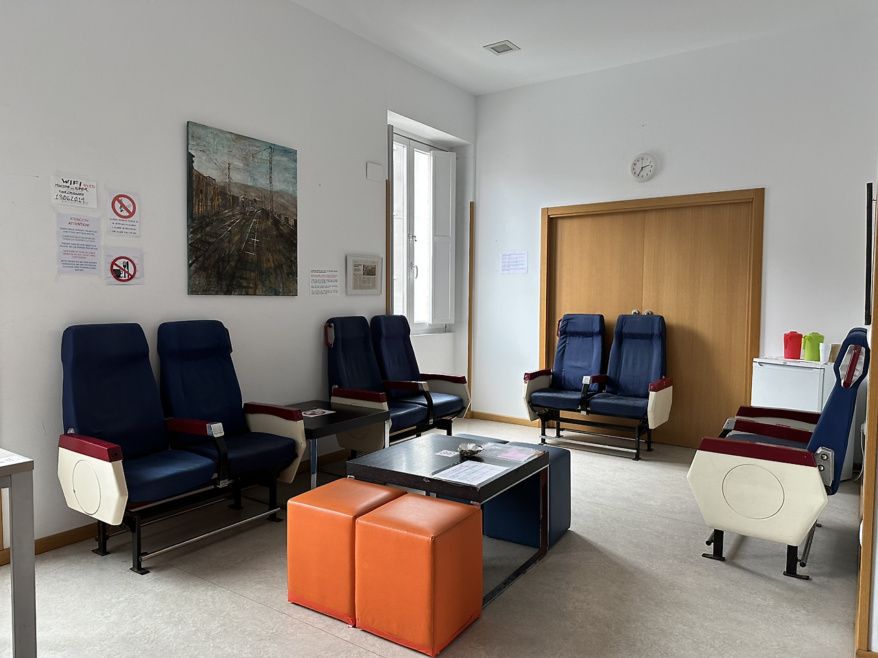 오늘 머무는 알베르게는 기차역사를 개조한 공립숙소로 로 8유로다. 특이하게 인포메이션에서 등록을 할 수 있게 운영되고 있었다. 알베르게에 바로 들어갈 수 있다는 희망을 품고 마을에 도착했는데, 다시 인포메이션으로 가야한다니. 오후 2시에 인포메이션 앞에 도착했더니 오후 2시부터 4시까지 시에스타로 휴식시간이란다.