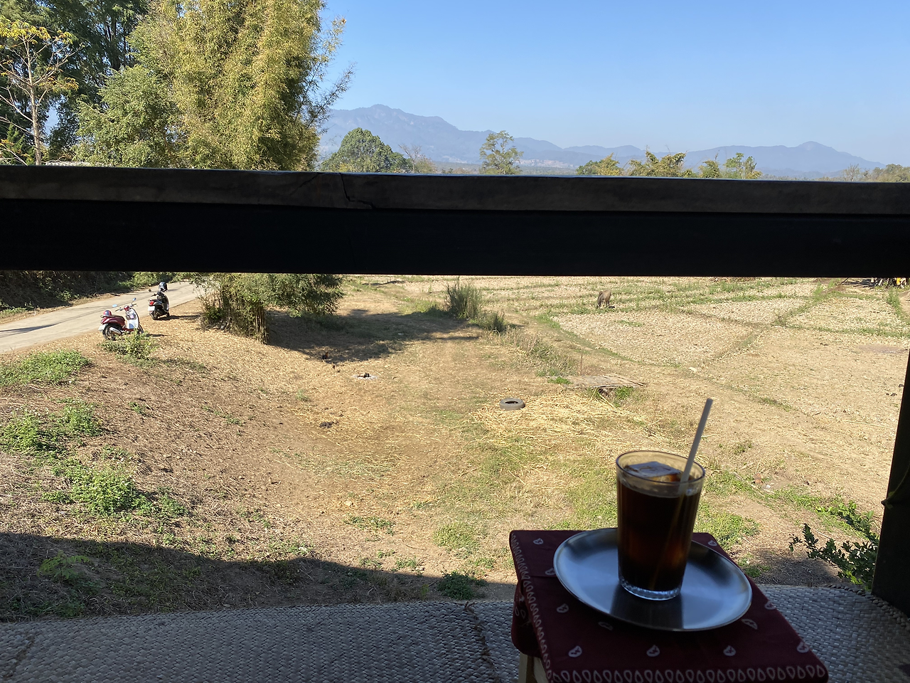 지금도 소가 풀 뜯어먹고 닭이 꼬꼬댁 거리는 논밭에 산 멍 때리기 좋은 뷰 카페에 아이스아메리카노 한 잔 시켜놓고 누워있다. 한국인 사장님이 운영하시는 곳이라 그런지 아님 한국 시골에서 비슷하게 볼 수 있는 풍경이라 그런지 한국 같다. 겨울인 1월에 오니까 비도 안 내리고 햇빛도 바람도 적당해서 빠이는 정말 유토피아처럼 느껴진다. 강렬하고 뜨거운 햇빛을 쬐고 문득문득 비를 쏟아내는 우기에 왔다면 몰랐을 감정이다.