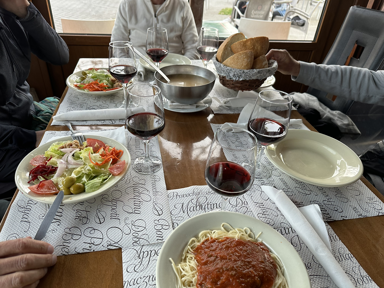 음식 주문할 때 6명이 주문할 메뉴를 취합했는데 칭찬받았다. 생일자의 특권이다. 각자 와인 한 잔씩 따르고 순례자들이 생일축하 노래를 크게 불러줬다. 사실 처음 본 사이인 분들이 많은데, 진심으로 축하해 줘서 고마웠다. 어제 숙소에서 같이 저녁을 먹은 두 명이 또 같은 숙소라 반가웠다.