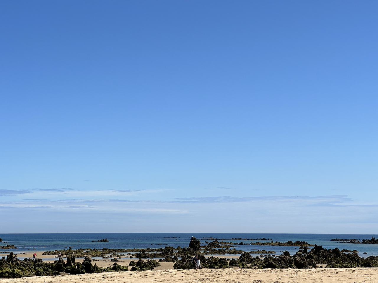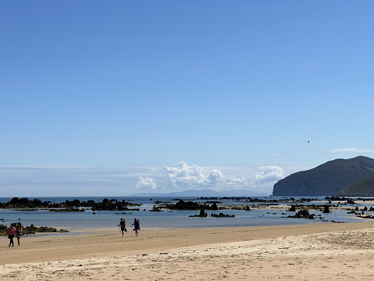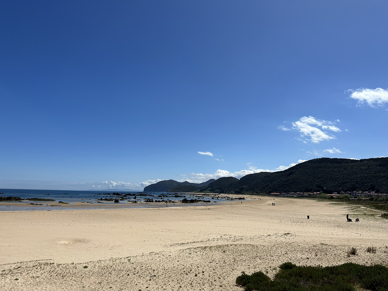 그렇게 오전 내내 걸어서 예쁜 해변가에 도착했다. 어제 룸메이트와 엘레나가 같이 걸어온다. 둘은 수영까지 했단다. 나도 그런 여유가 있으면 좋겠지만 먼 걸음을 가야 해서 잠시 멍 때리다가 일어나서 또 걸었다. 아까 방향 모를 때 만난 2명을 또 걷다가 마주쳤다. 절뚝거리며 걸으면 순례자들이 더 기억한다. 그 절뚝거리던 애가 여기까지 왔다니 대단하다 싶은가 보다. 좀 있다 또 보자고 하고 얼른 걸음을 옮겼다. 나는 물집이 발바닥에 가득해 걸음이 느리니 남들보다 더 서둘러야 한다.