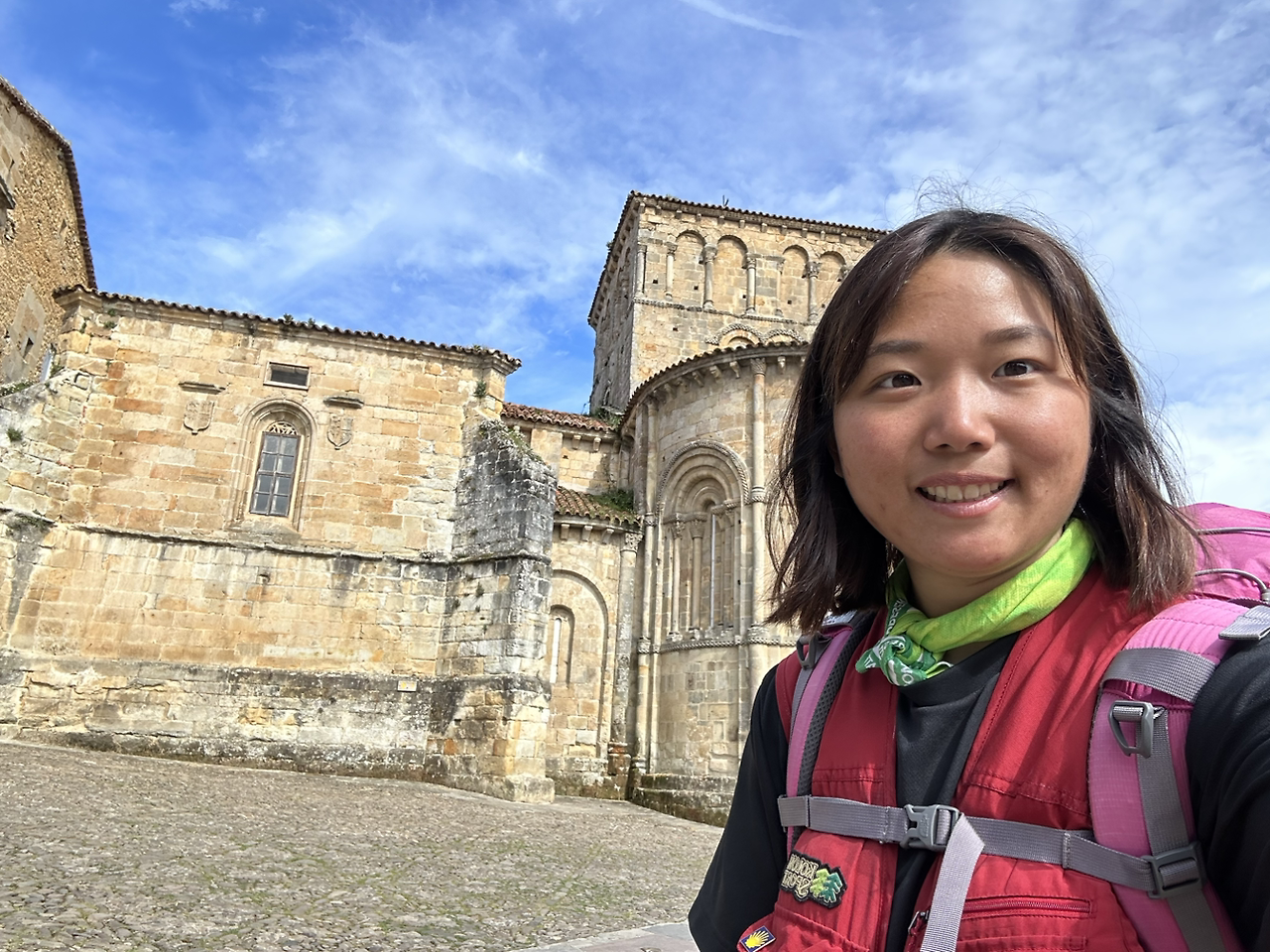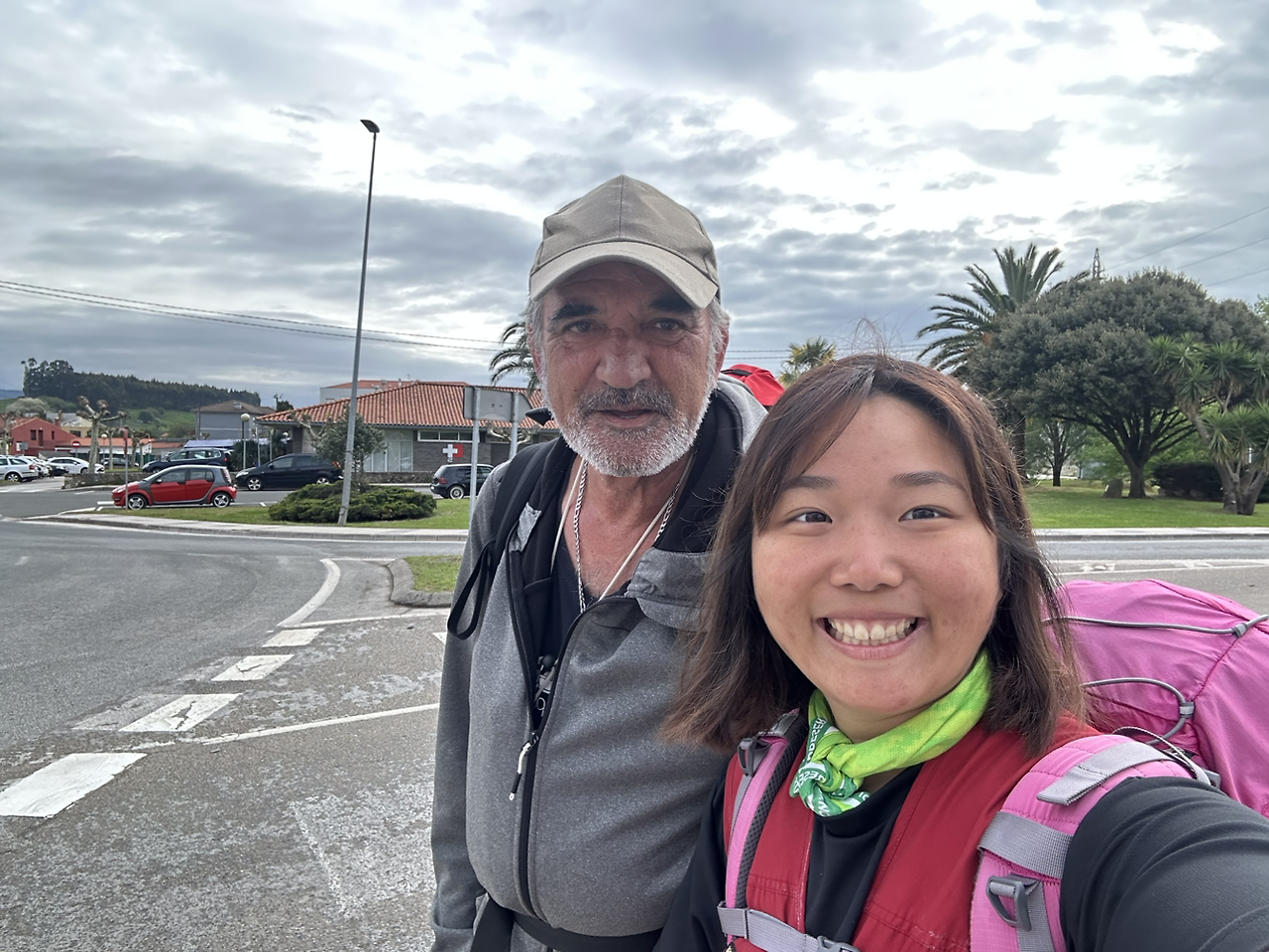 누가 뒤에서 내 배낭을 슬쩍 들어 올렸다. 뒤를 돌아보니 스페인친구 환이었다. 반가운 마음에 같이 사진을 찍었다. 뭐라 뭐라고 스페인어로 열심히 말하는데 전혀 모르겠다. 다음 순례길엔 스페인어를 배워서 와야겠구나 생각했다. 마음으로 스페인어를 알아듣는 데 한계를 느꼈다.