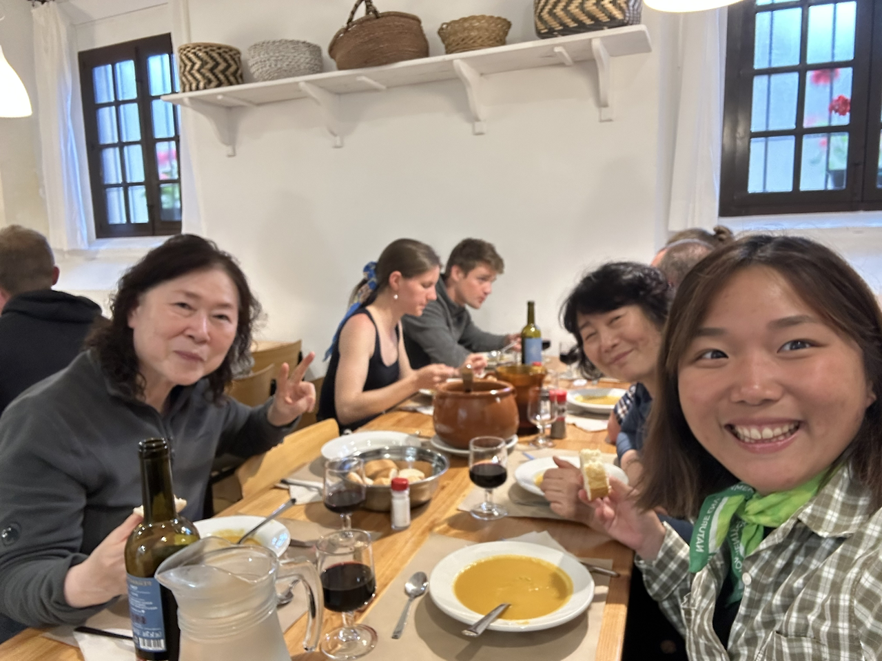 숙소에 도착하고 이룬에서 만난 한국인 어머니들 단톡방에 소식을 전했다. 어머나 어머니들이 아직 이 마을에 계시단다. 너무 반가웠다. 한분이 무릎인대가 늘어나셔서 며칠간 여기 계셨더라. 너무 걸음이 힘겨워 보이셔서 내가 다 아팠다. 한국에서 뵙기로 하고 헤어졌는데 다시 봐서 기뻤다. 원래 오늘 다른 도시로 떠날 예정이었는데 숙소와 마을이 예뻐서 하루 더 있기로 하셨단다. 우연한 결정이 운명적으로 다시 이어주었달까.